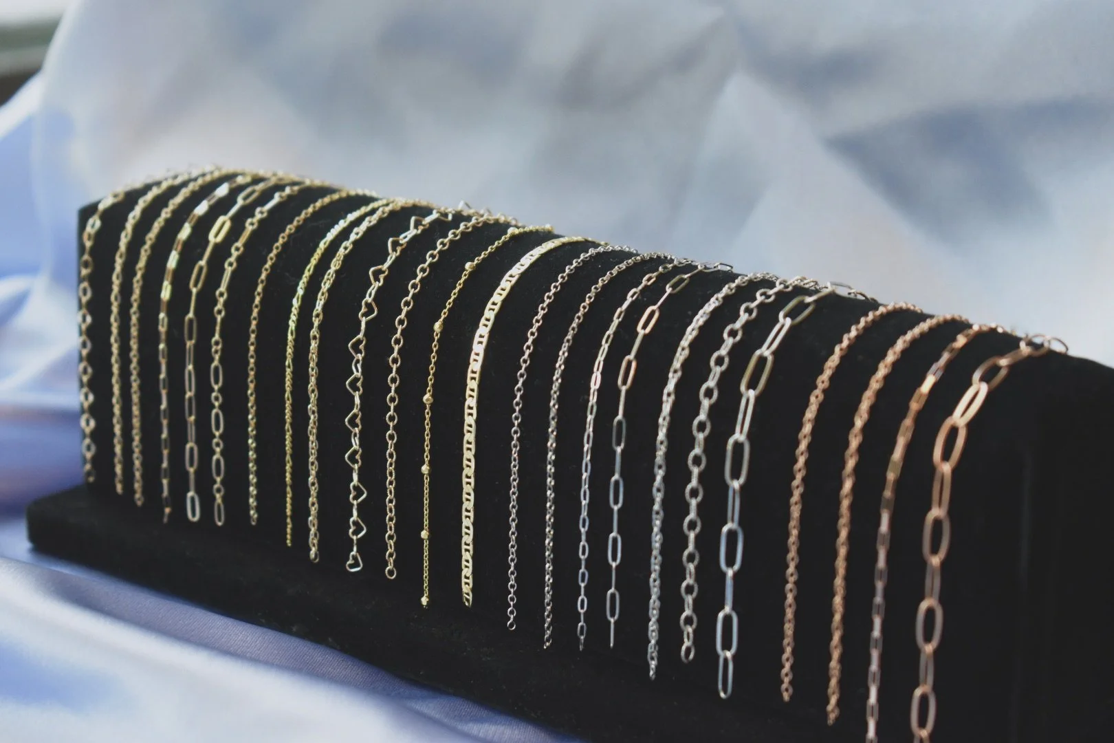 Choose a chain! We also have a wide variety of charms and clasps as an add-on. The permanent jewelry experience is quick, painless, and completely customizable.
