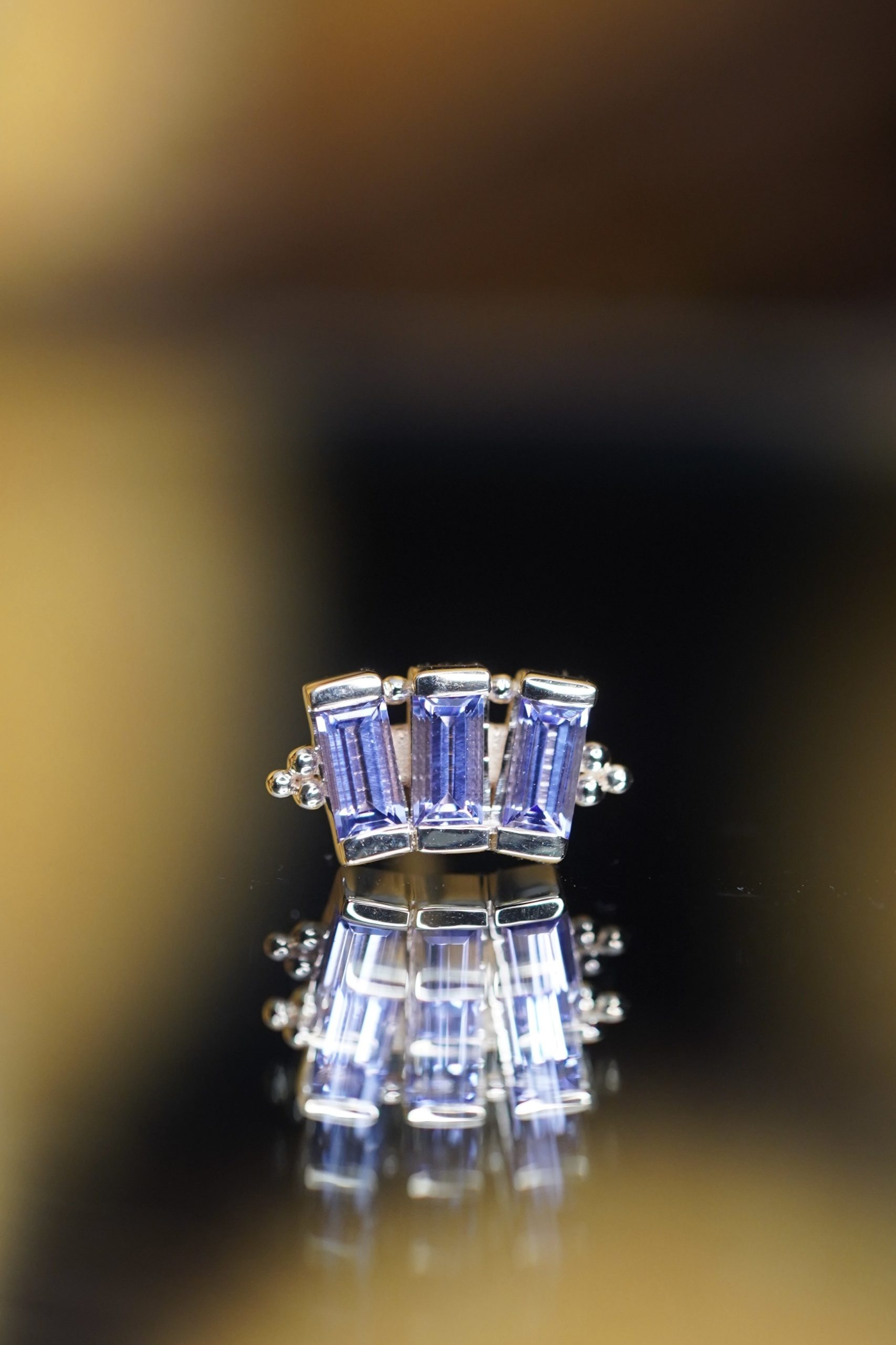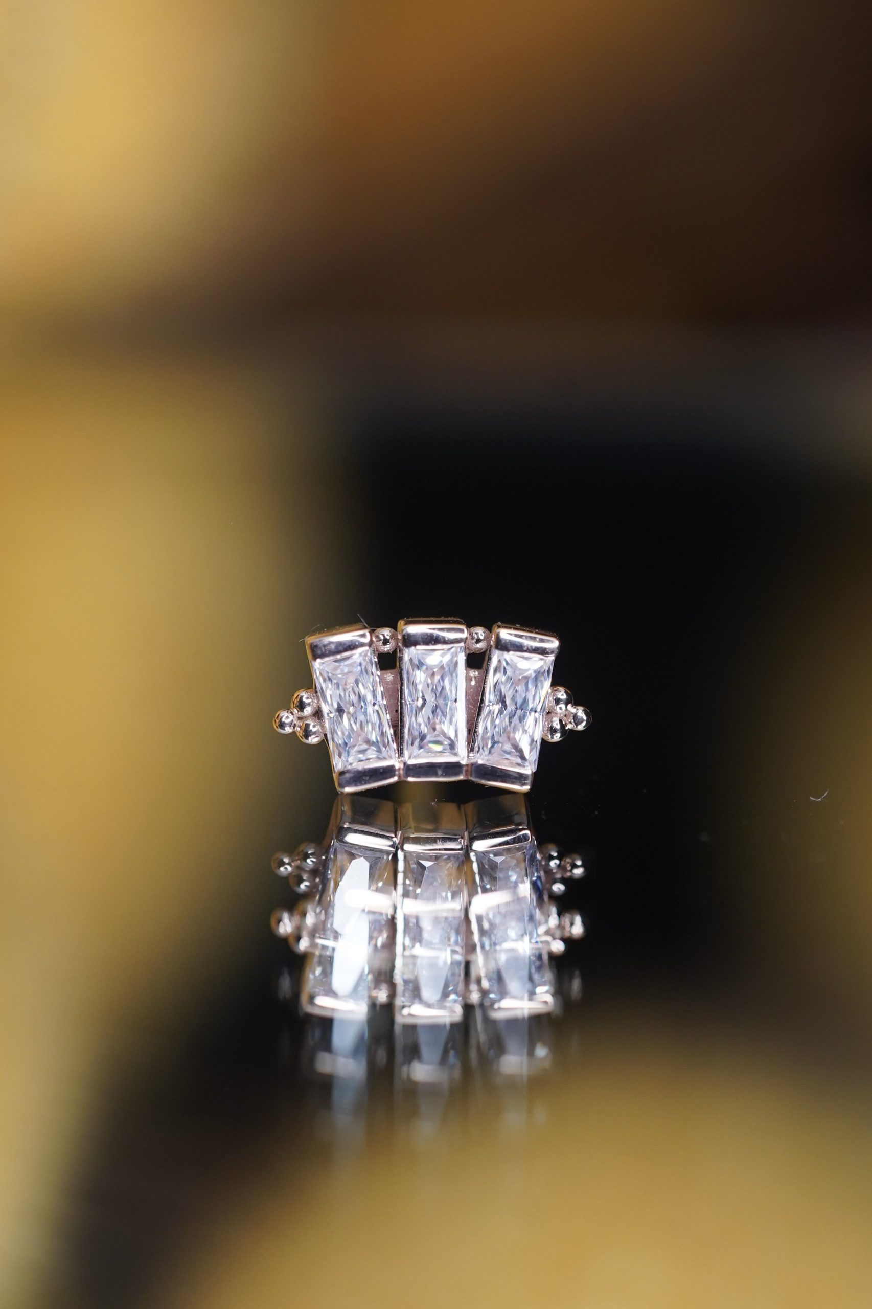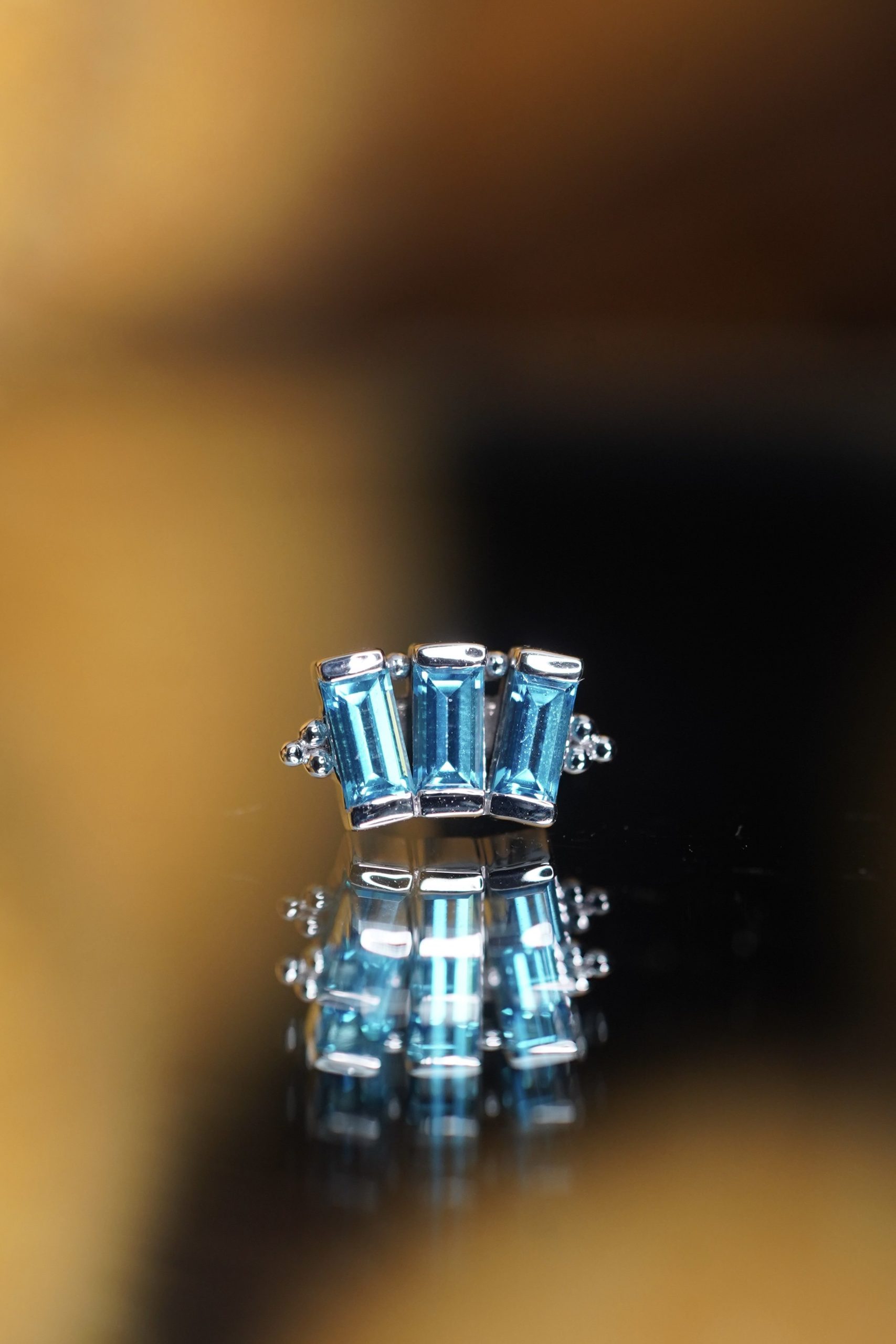 Stunning baguette cluster pieces handcrafted by Body Vision Los Angeles! These gorgeous studs are made with 14 karat solid gold and various genuine gemstones. With an overall diameter of 10×7mm, these pieces hold 4×2mm straight baguette cut gems. We think they would be perfect in a helix or conch piercing! Compatible with an 18 or 16 gauge Industrial Strength threaded post sold separately.