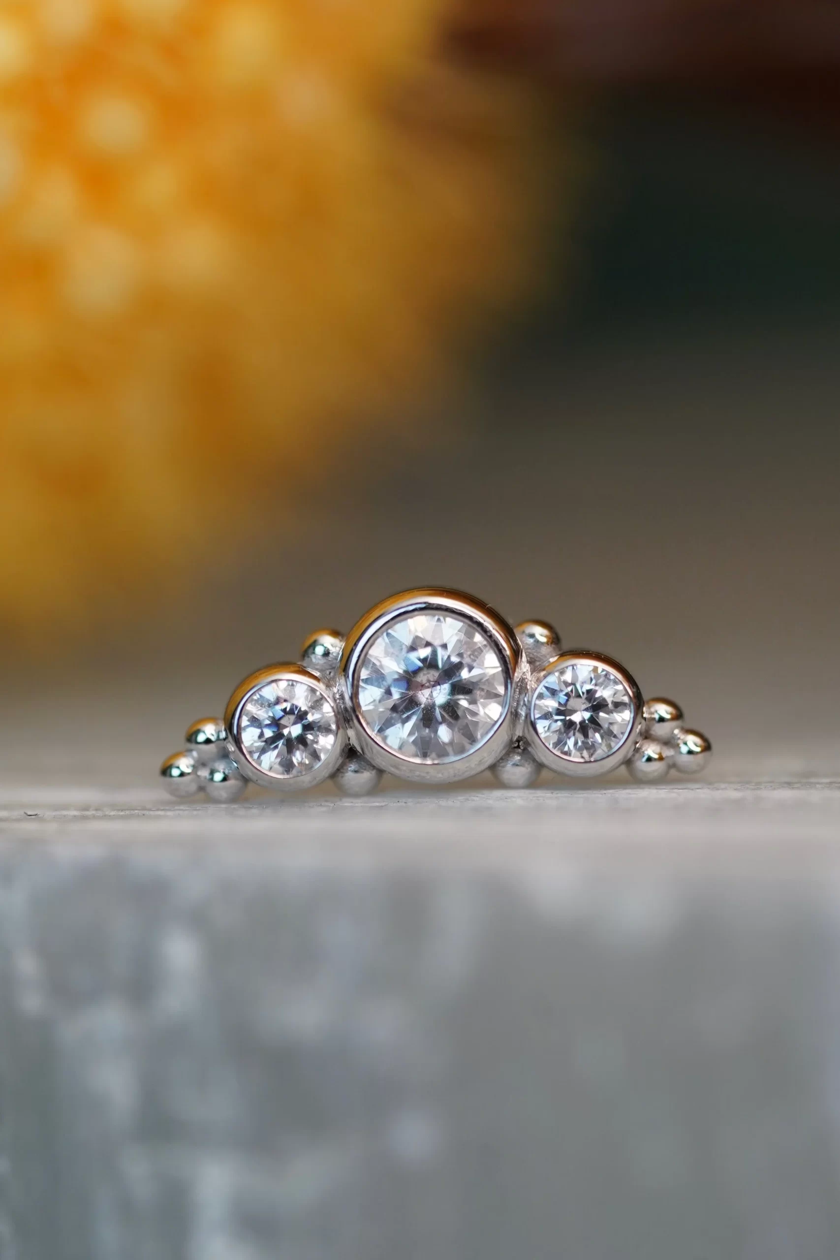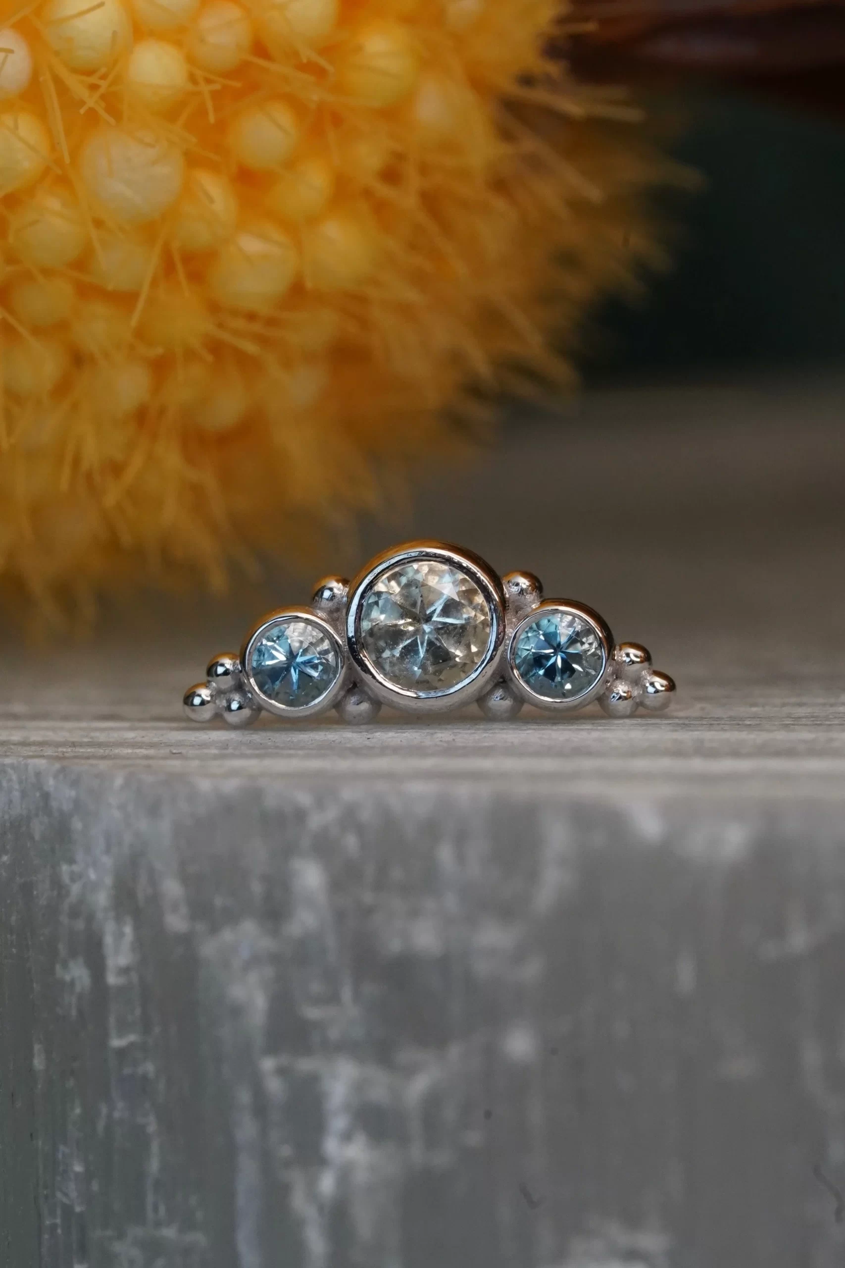 These gorgeous clusters handcrafted by Body Vision Los Angeles would look perfect in a conch or flat piercing! Made with 14 karat solid gold, these pieces are 11.5mm in length with 2mm and 3mm gemstones. They are internally threaded and compatible with an Industrial Strength 18 or 16 gauge internally threaded post sold separately.