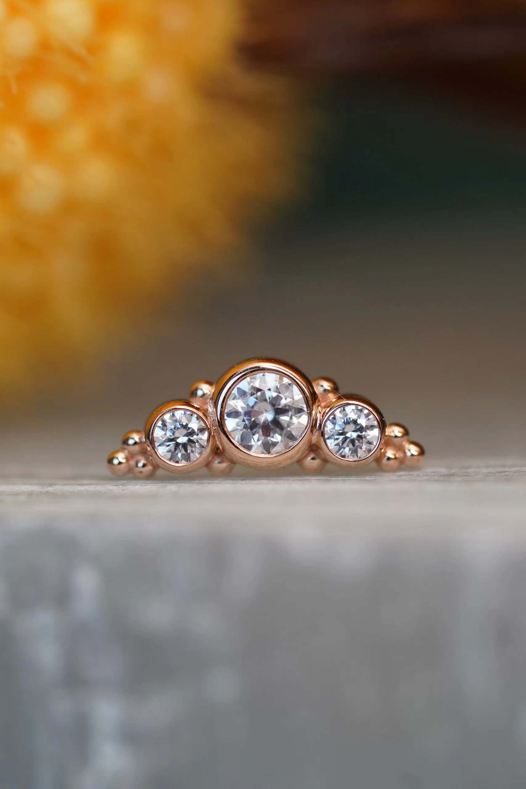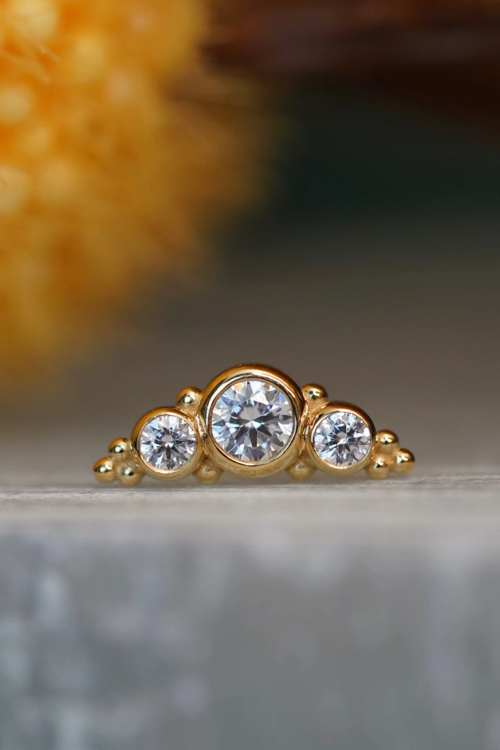 These gorgeous clusters handcrafted by Body Vision Los Angeles would look perfect in a conch or flat piercing! Made with 14 karat solid gold, these pieces are 11.5mm in length with 2mm and 3mm gemston