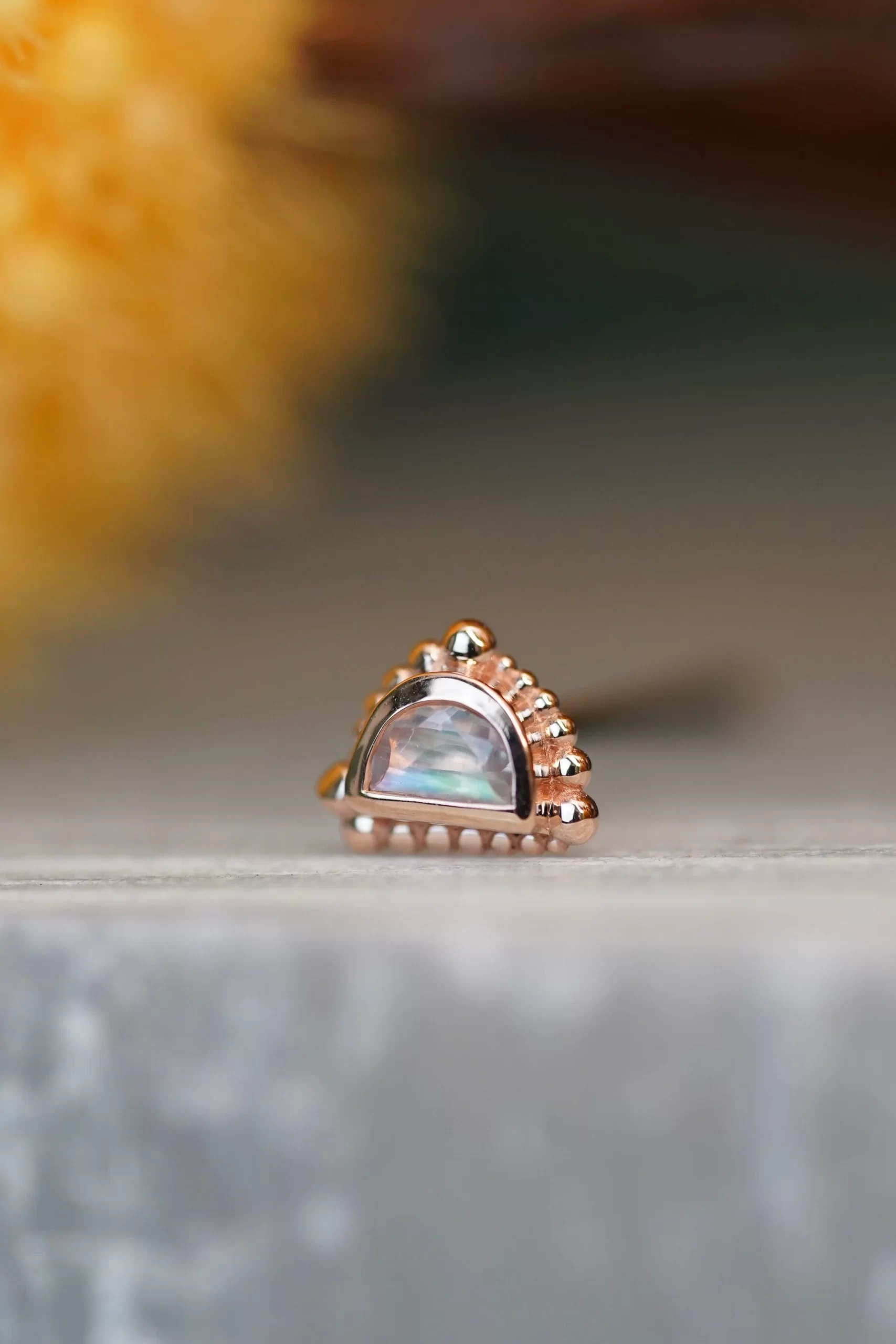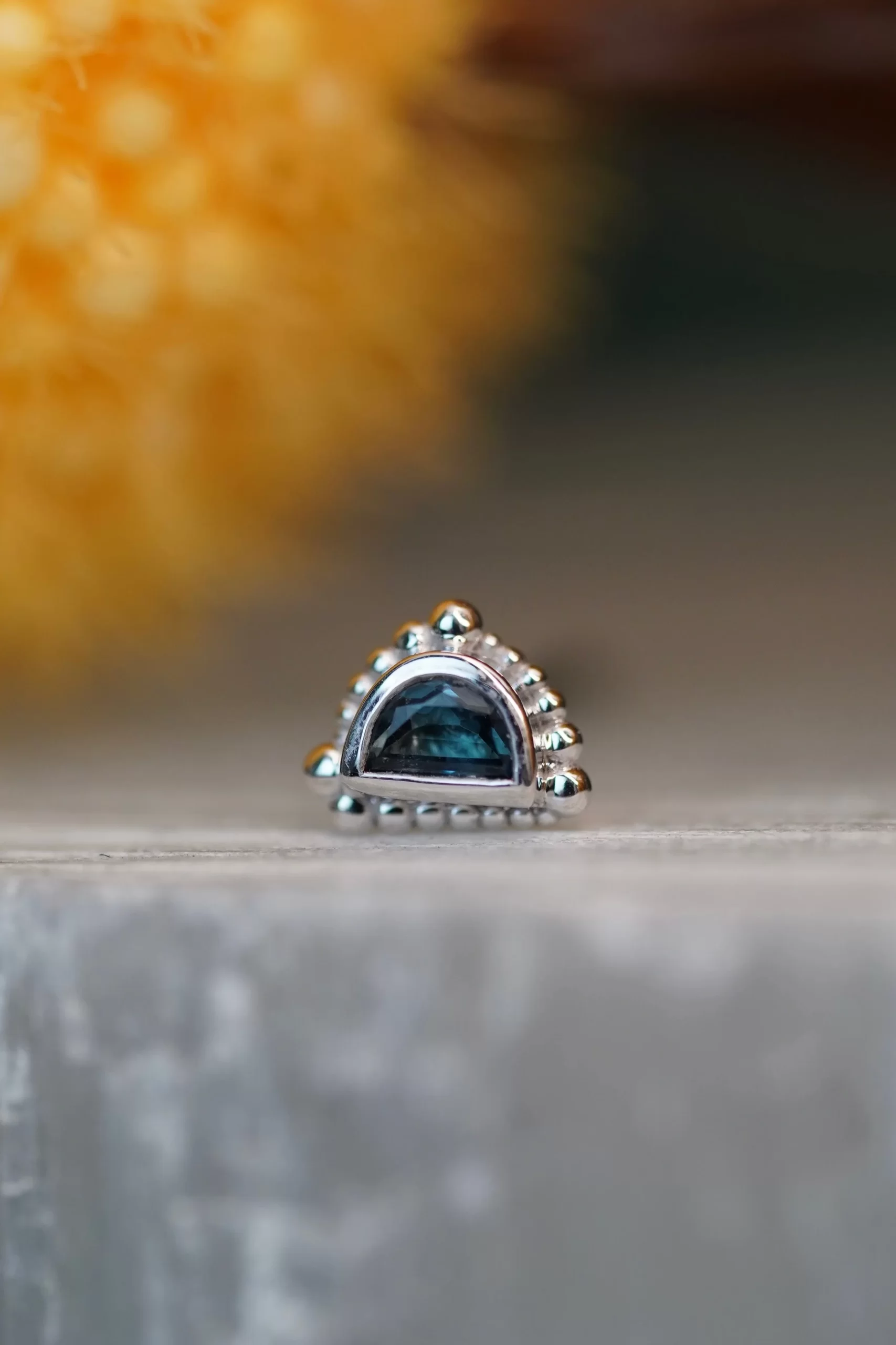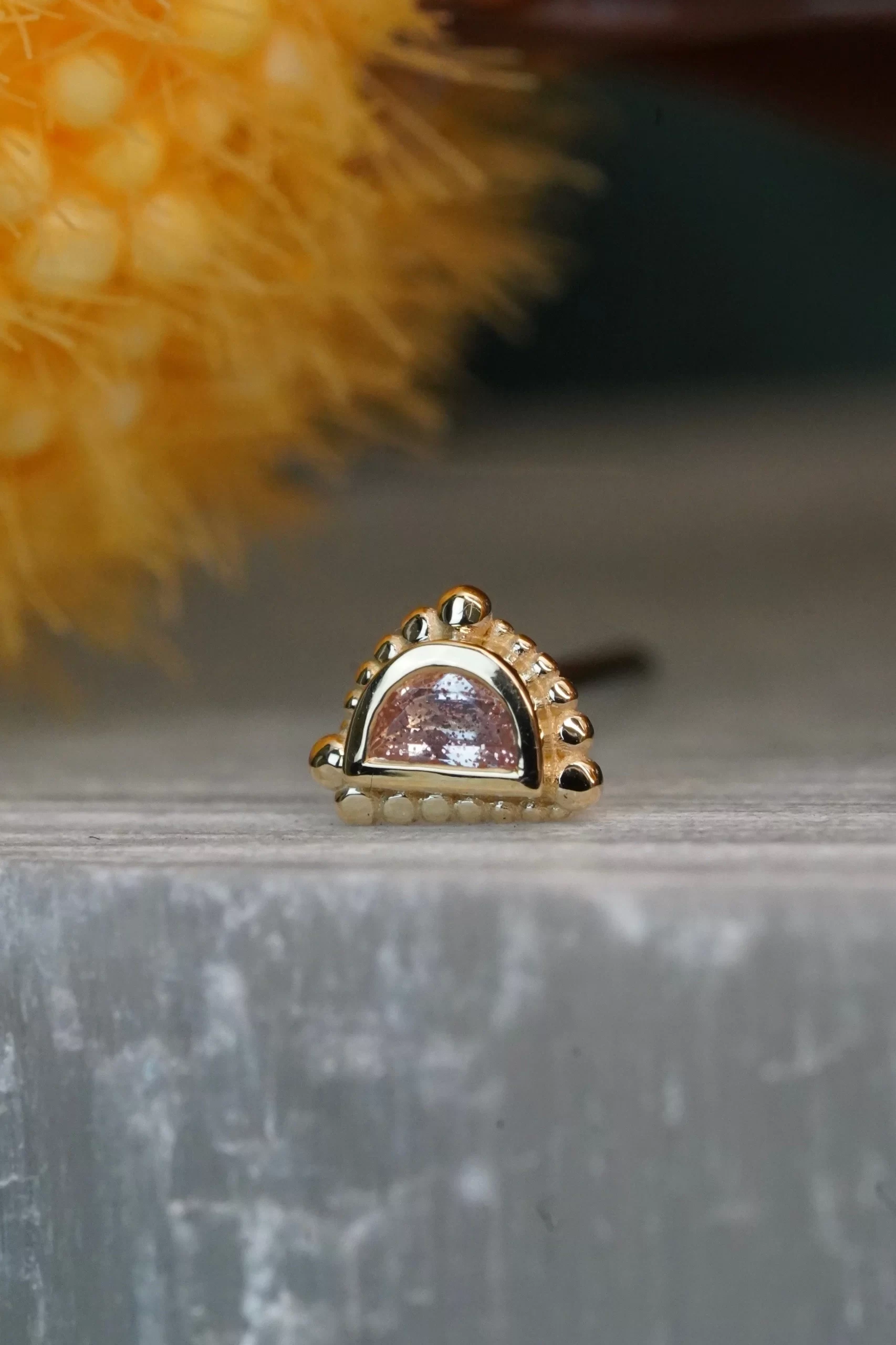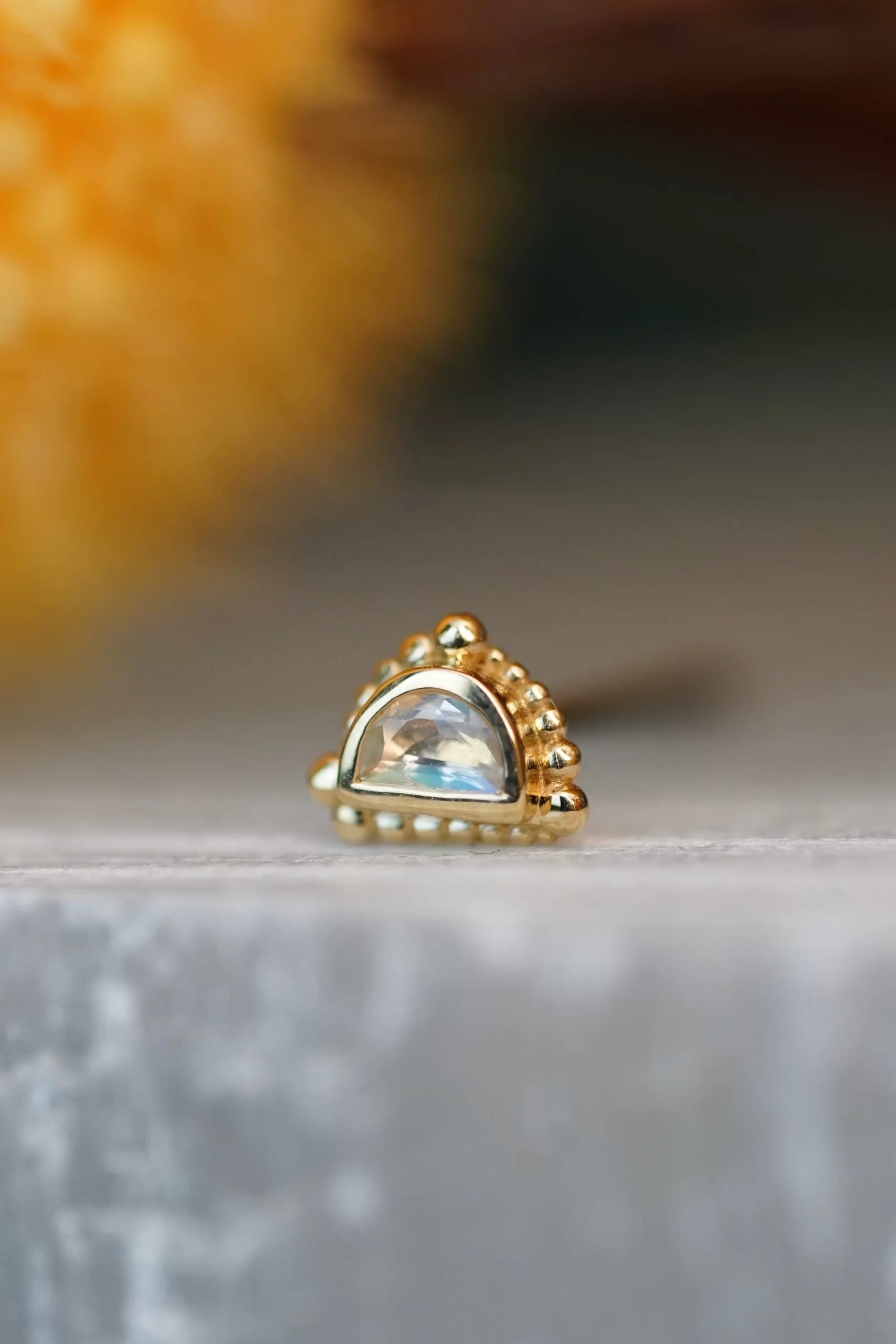 These beautiful tops handcrafted by Body Vision Los Angeles are 6x5mm in diameter with 3x2mm gemstones and set in 14 karat solid gold. The unique setting of these pieces would make for a perfect statement piece! These are compatible with an Industrial Strength 18 gauge or 16 gauge internally threaded post sold separately.
