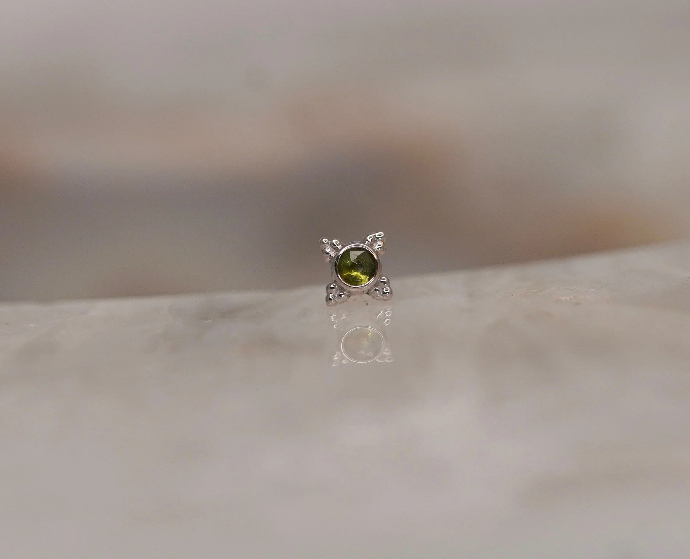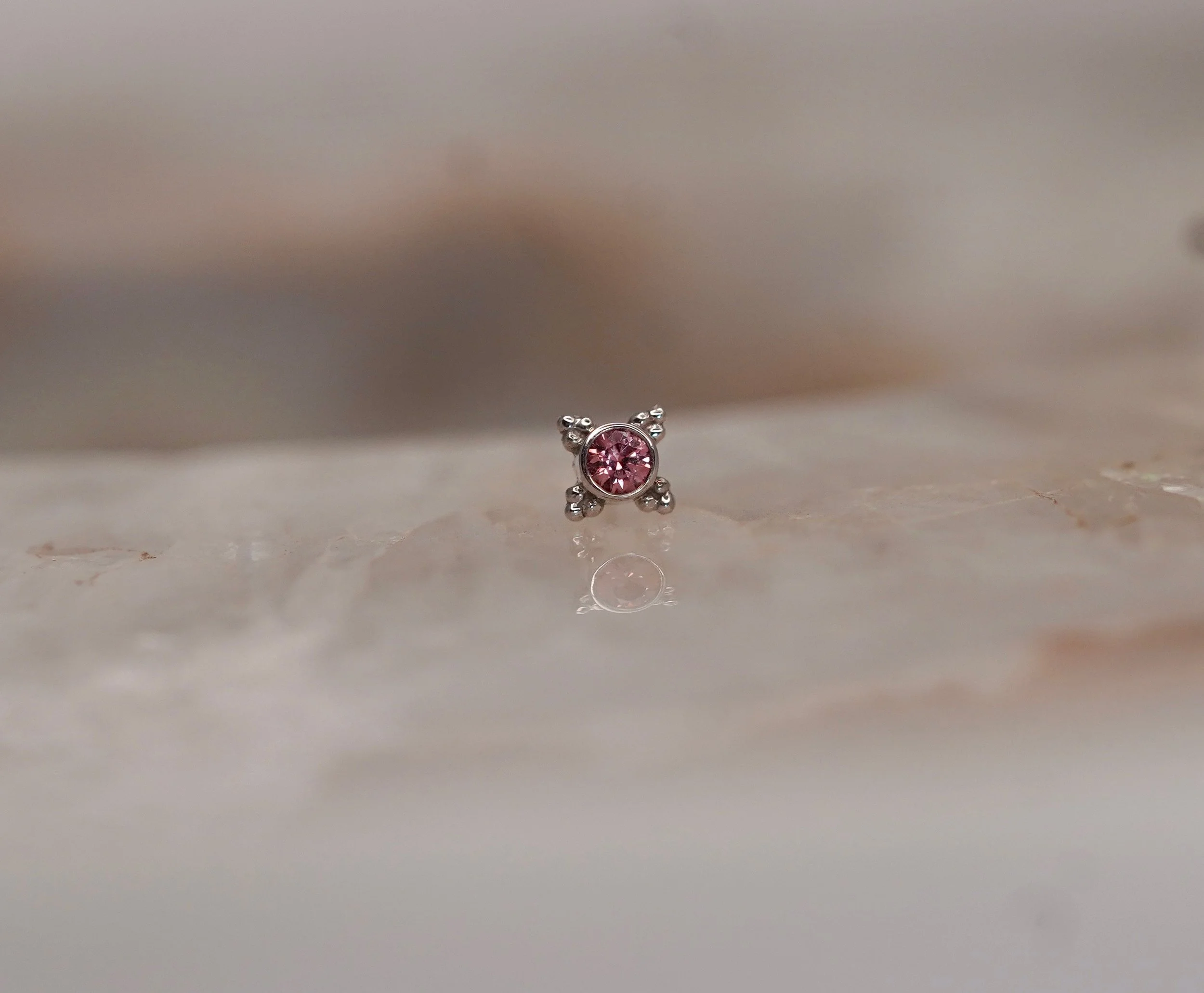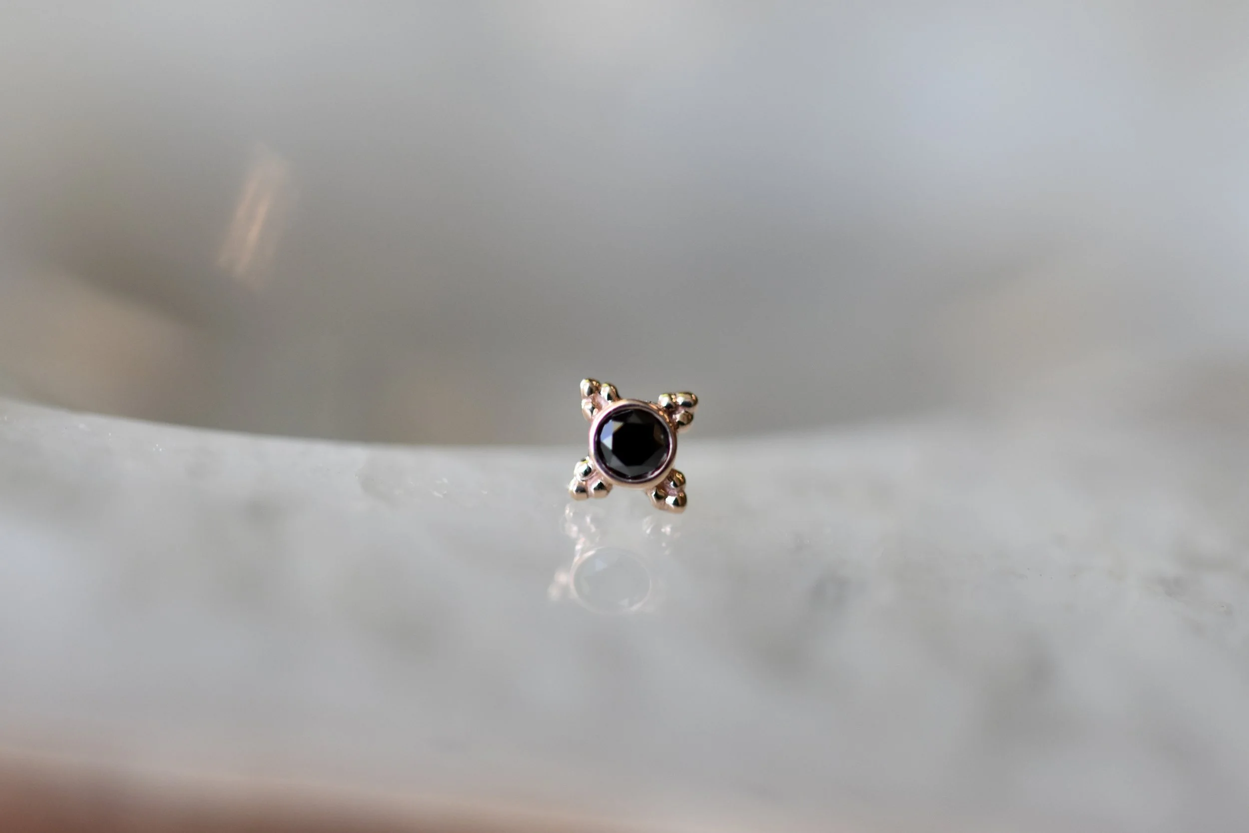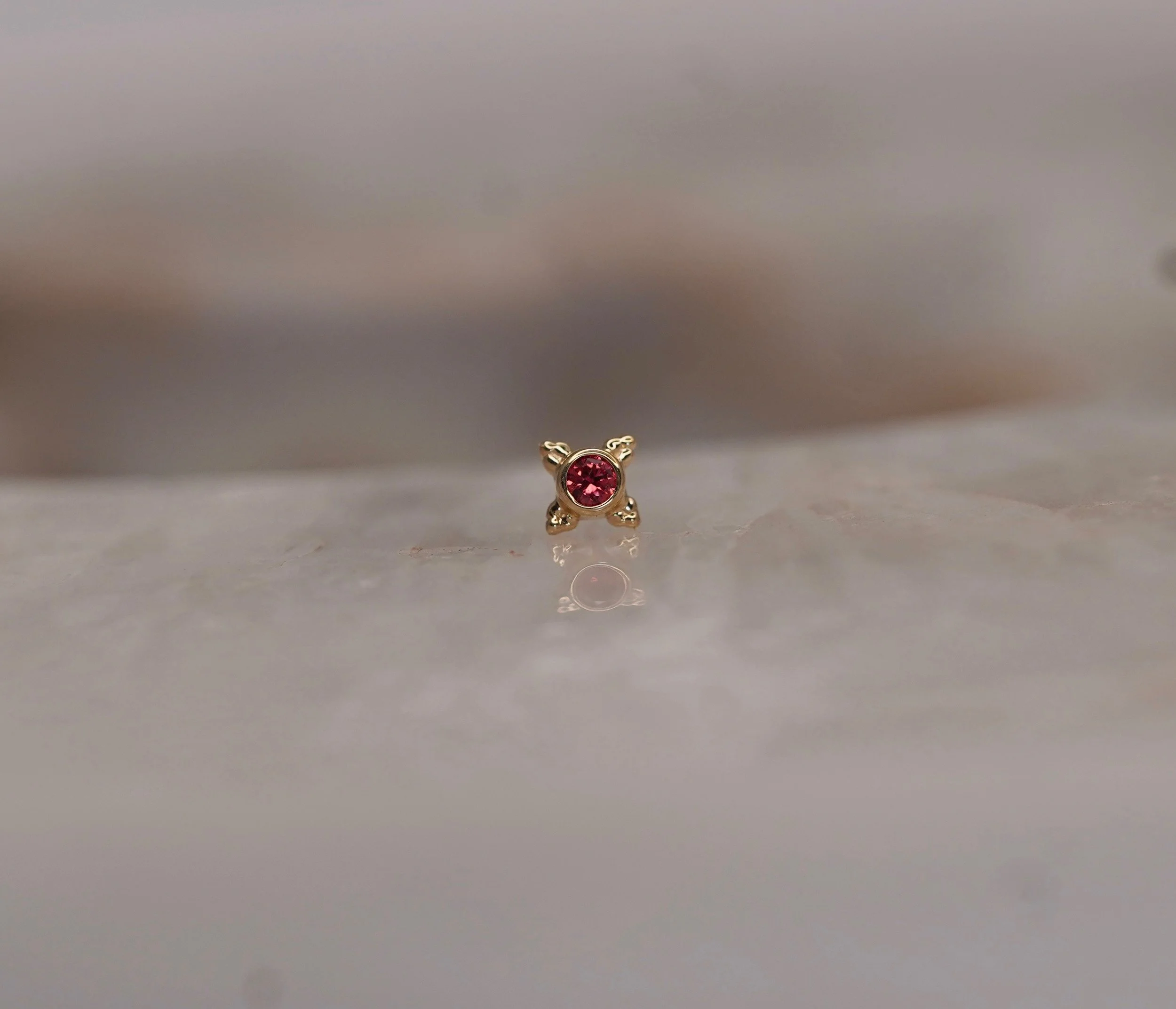 14k Mini Kandy from Body Vision Los Angeles. 5mm overall with a 2mm center stone in each. Compatible with an 18g Neometal threadless back piece.