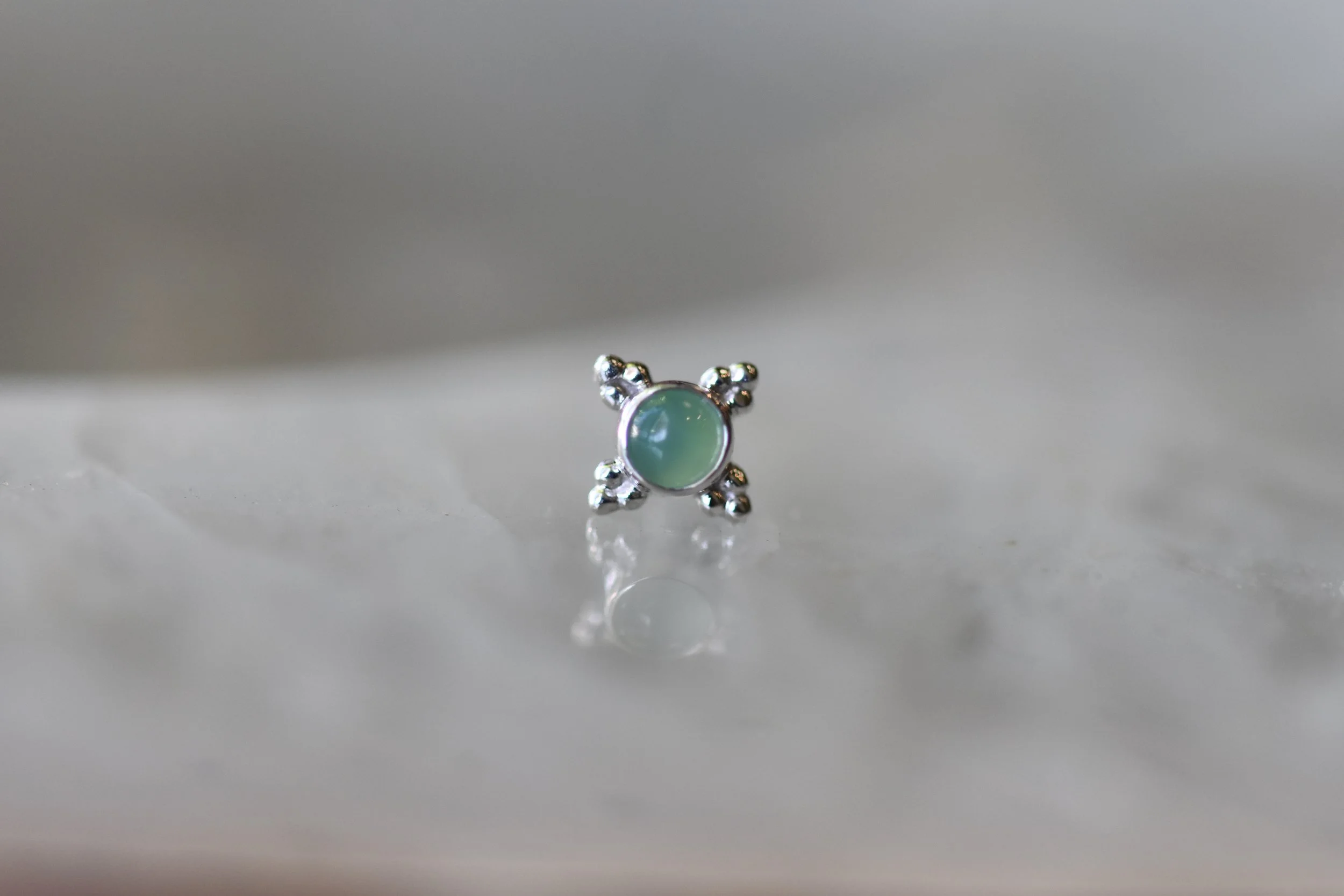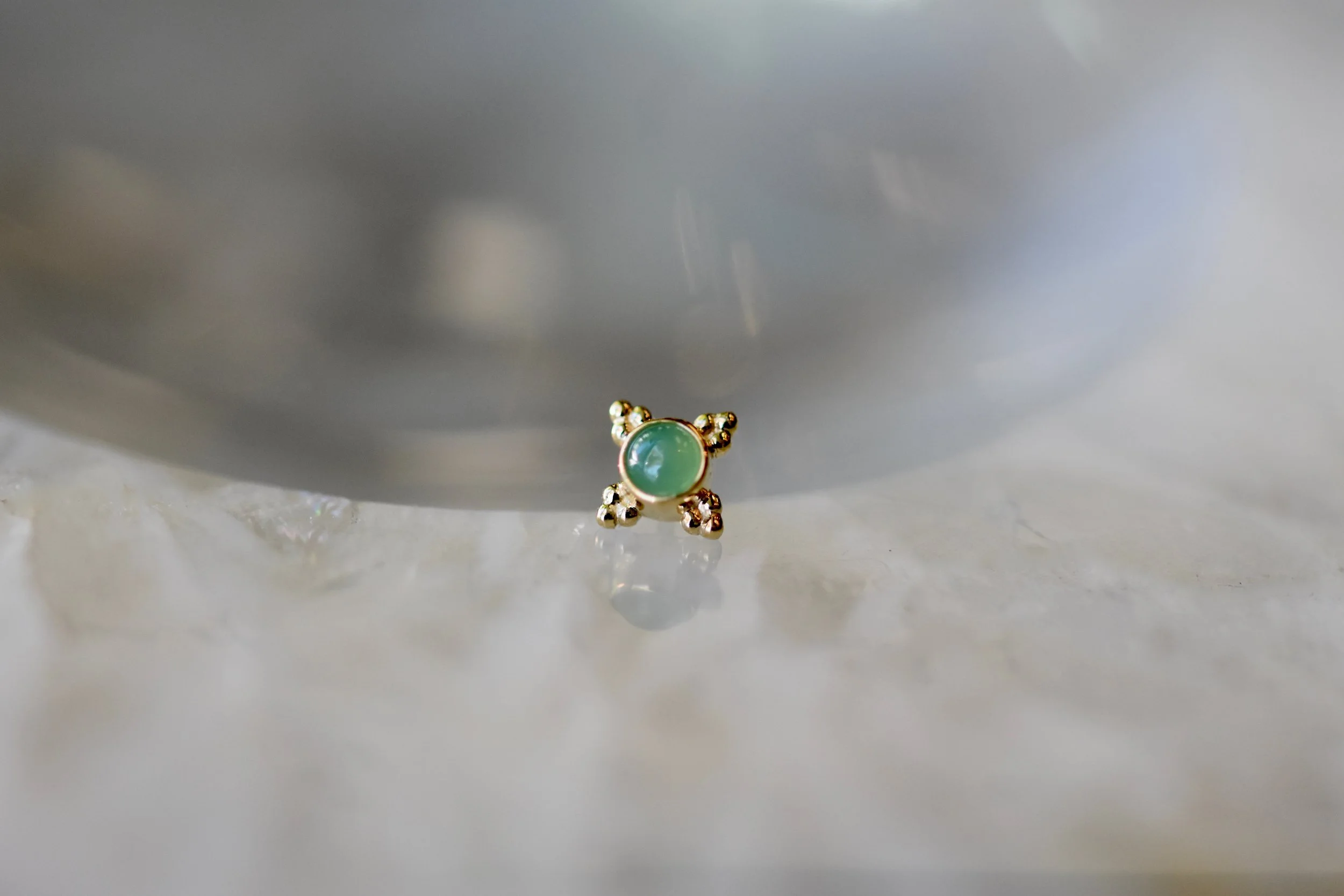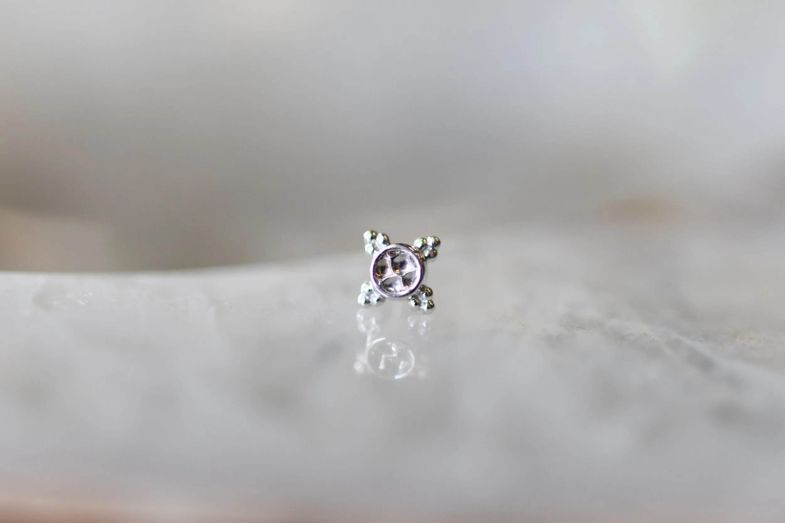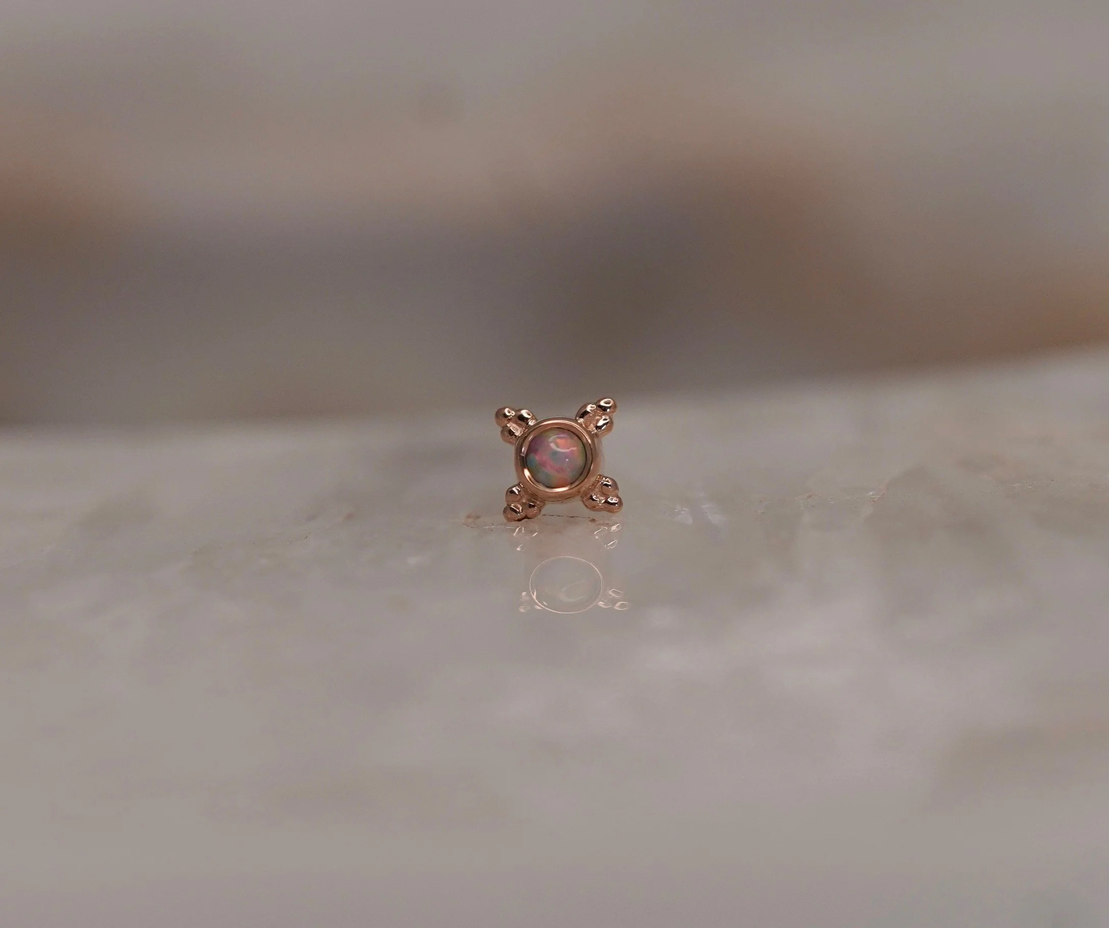 14k Mini Kandy from Body Vision Los Angeles. 5mm overall with a 2mm center stone in each. Compatible with an 18g Neometal threadless back piece.