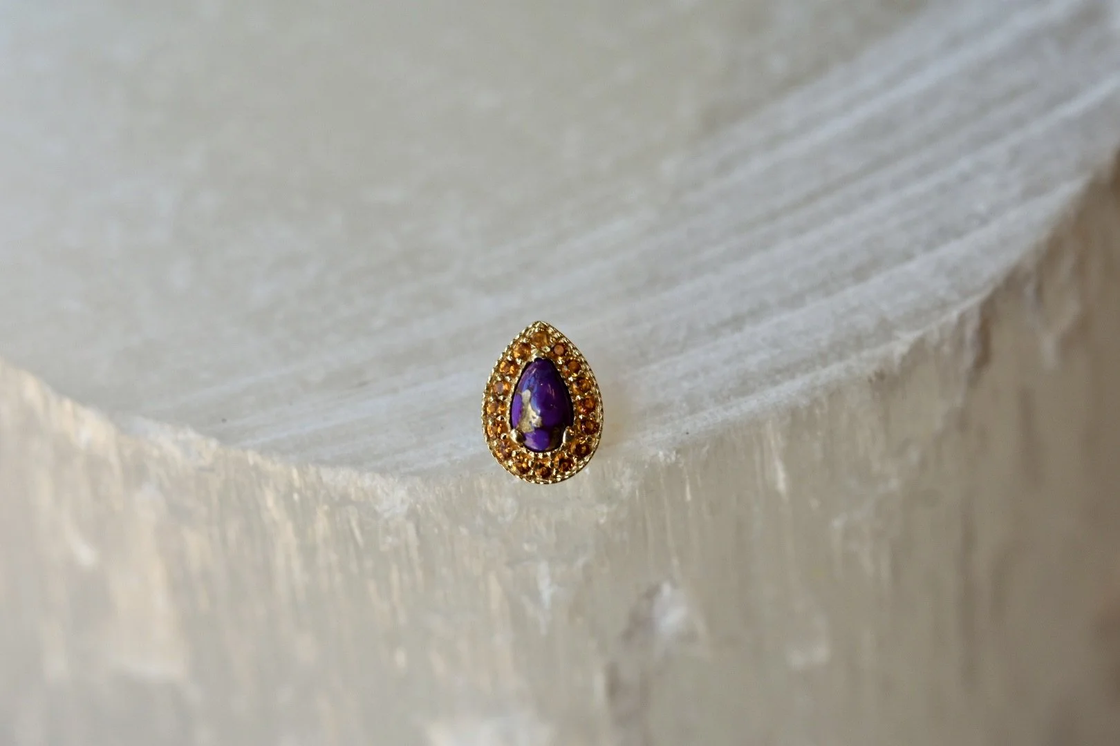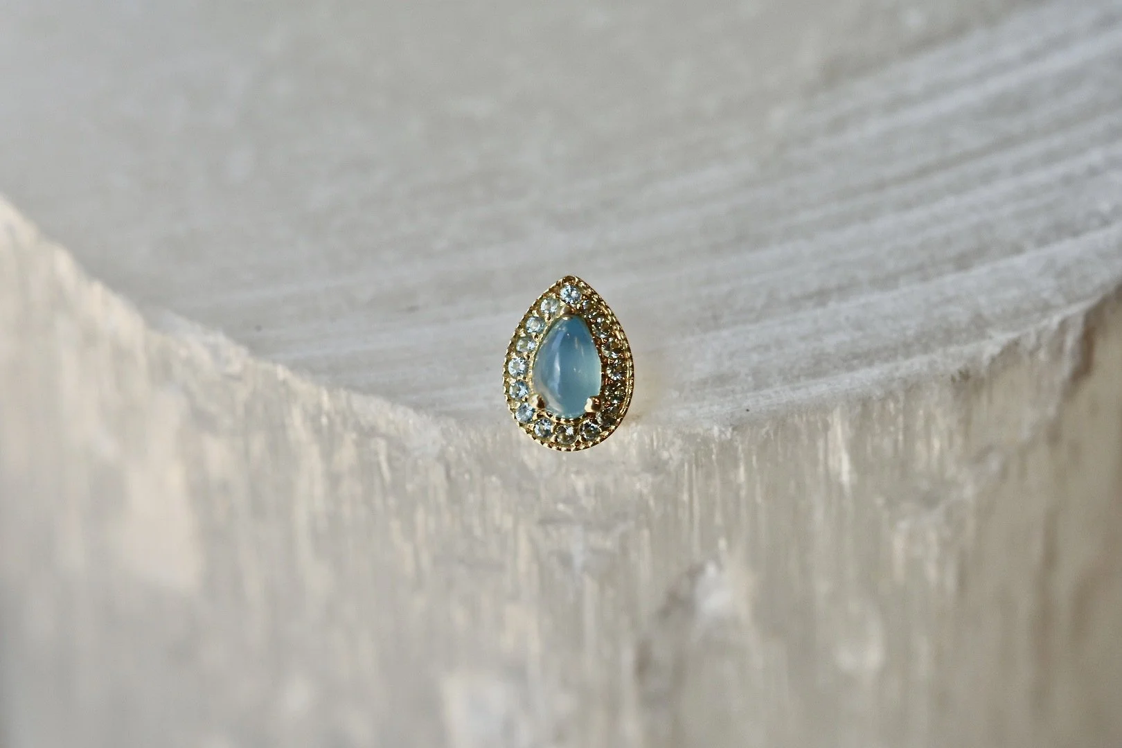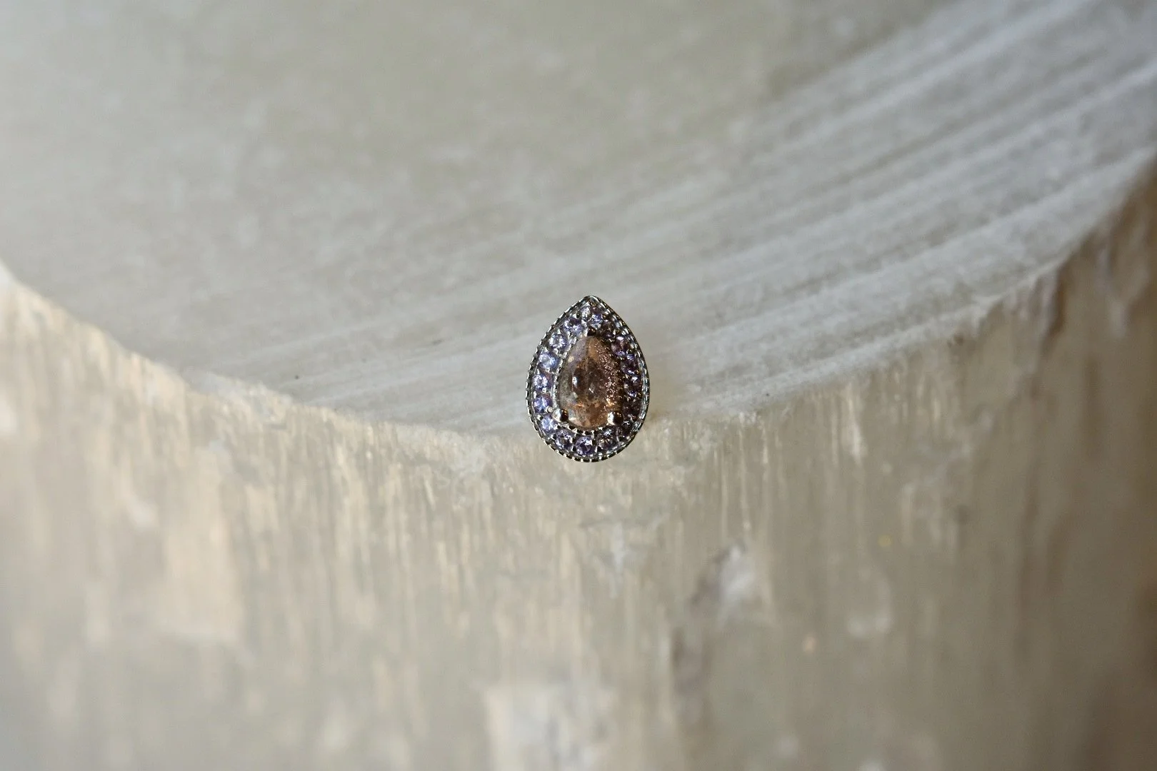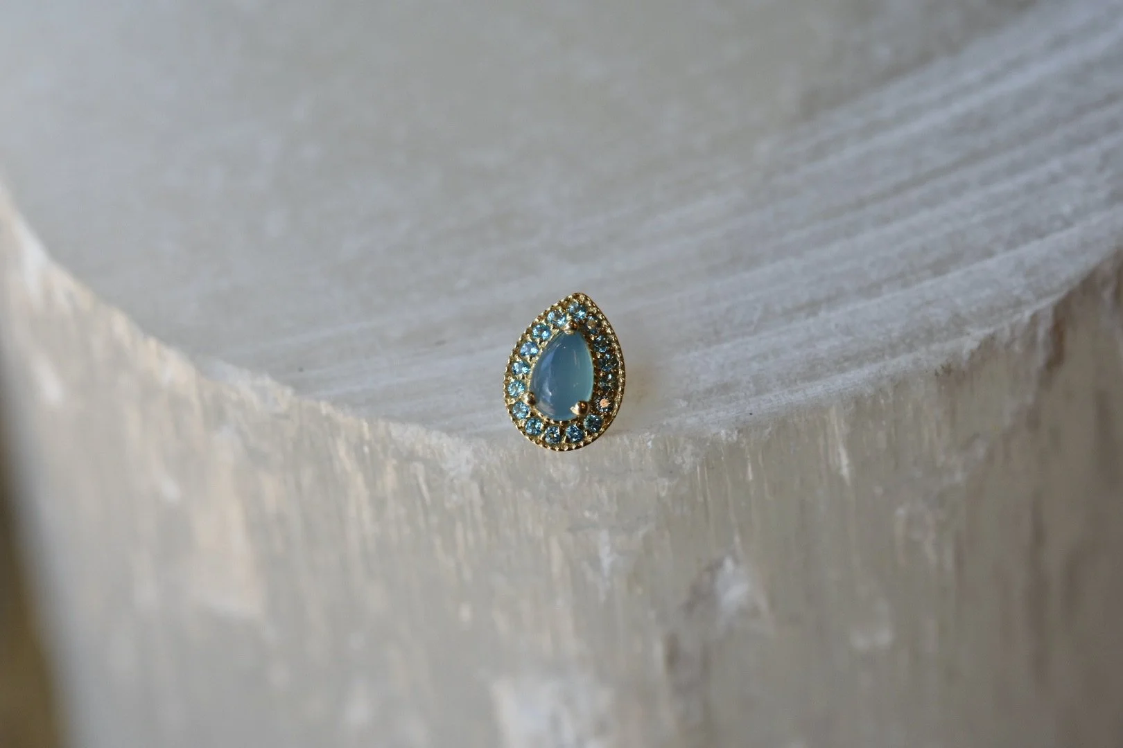 These incredible pieces from BVLA feature a 5x3mm inside genuine stone with surrounding 1mm genuine stones. All pieces are 14k solid gold and compatible with 16 or 18 gauge Industrial Strength internally threaded posts.