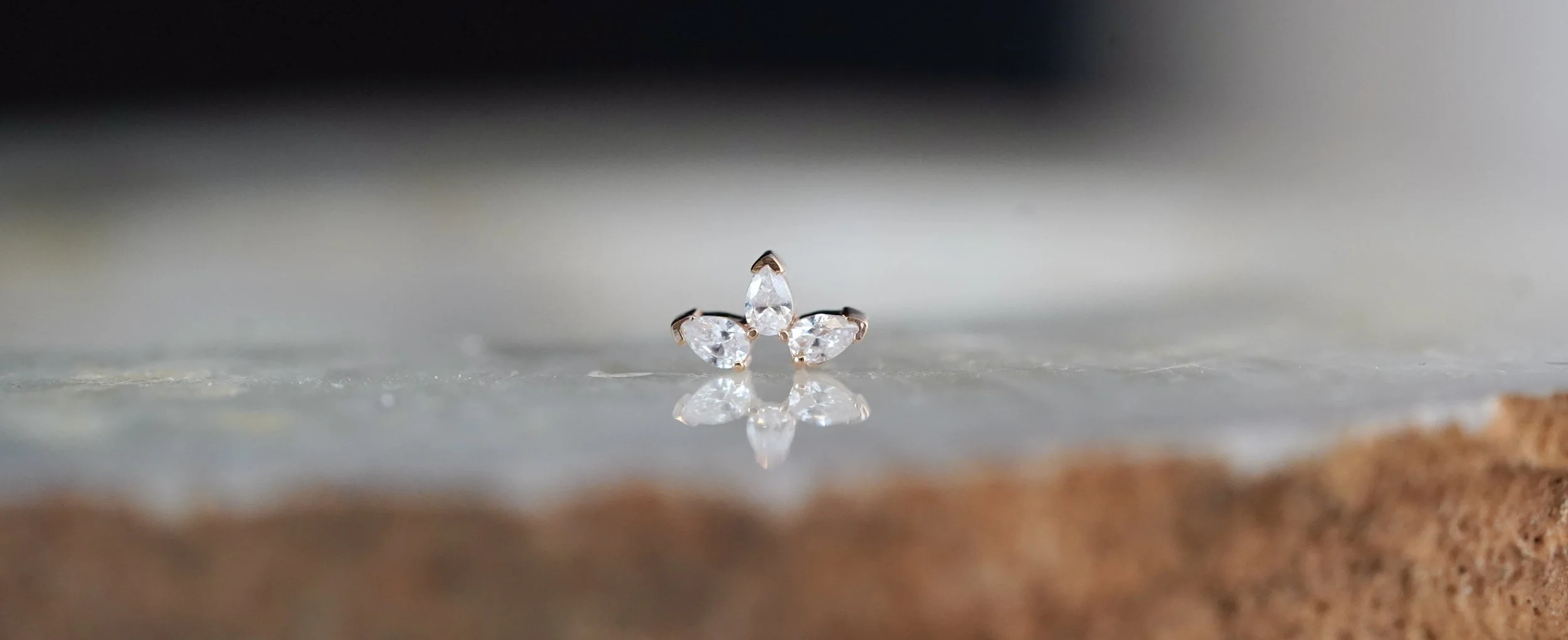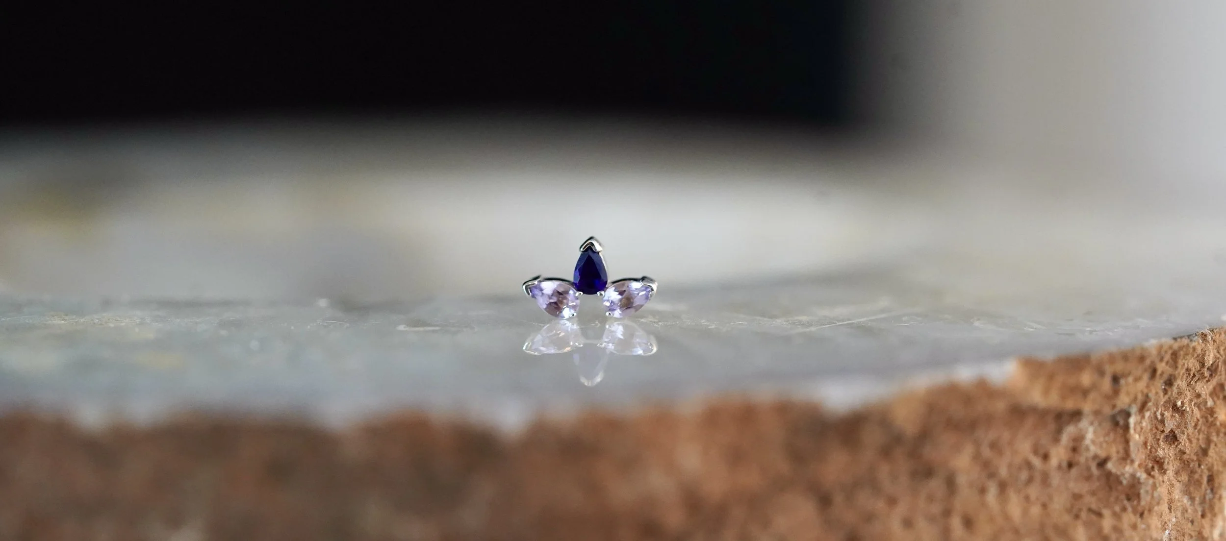 The Saint threaded top handcrafted by Body Vision Los Angeles in 14 karat solid gold featuring different gemstones. Available in Cyan CZ, light Amethyst and Amethyst, or White CZ. Compatible with 16/18 gauge internally threaded Industrial Strength post sold separately. Perfect piece for a variety of ear piercings!