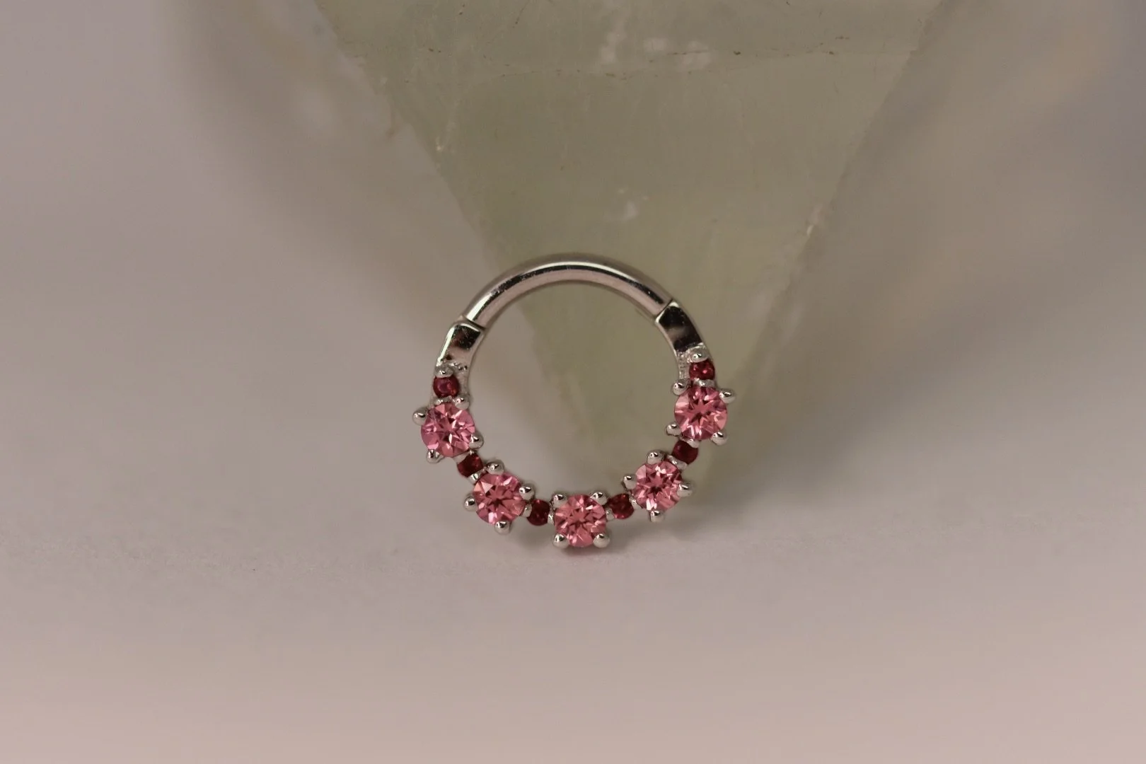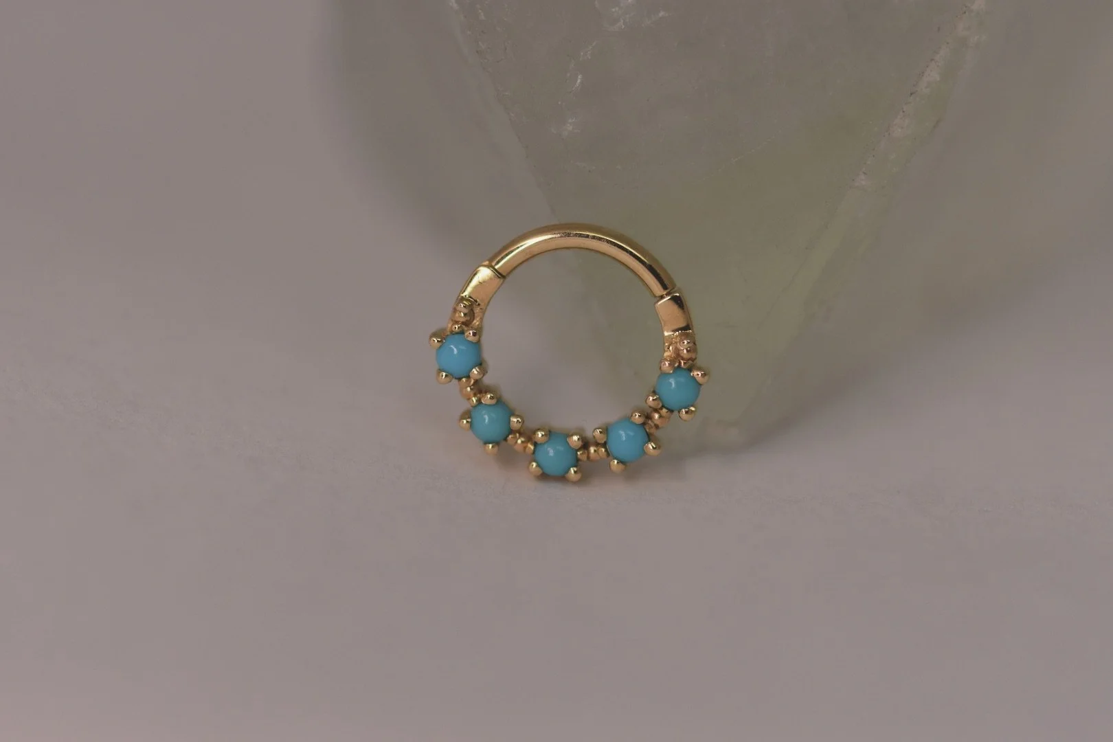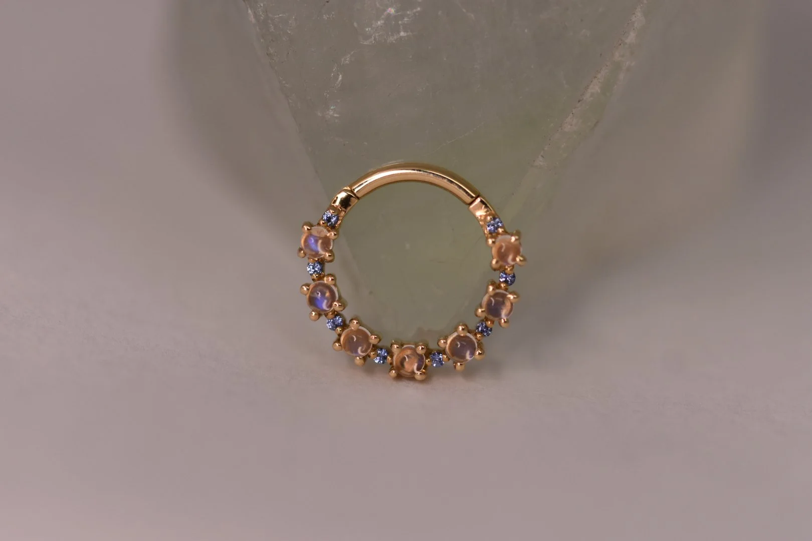 The “Setevos” hinge ring handcrafted by Body Vision Los Angeles in 14 karat gold with each ring featuring a different variety of genuine gemstones. Available in 16 gauge and two diameters!