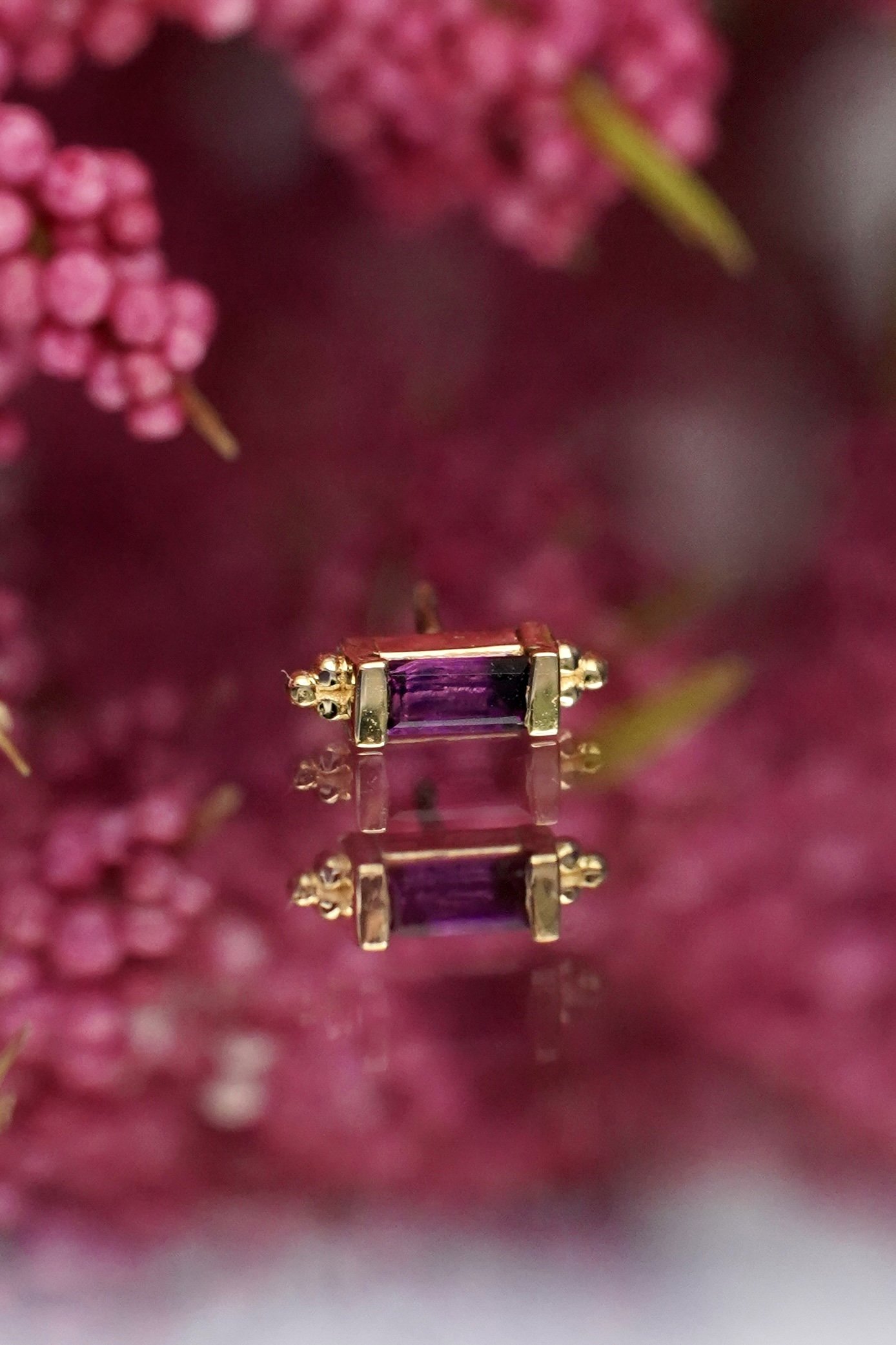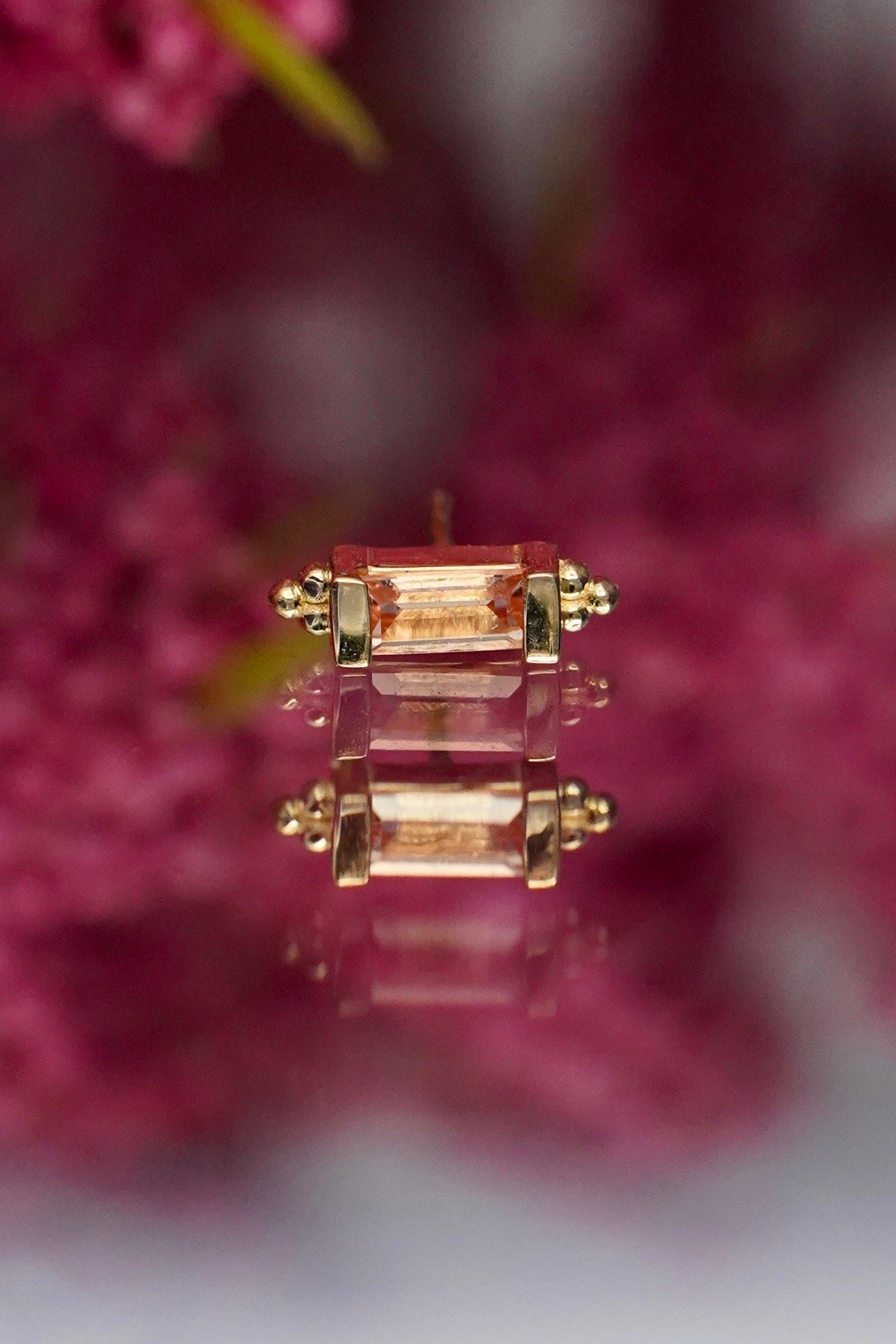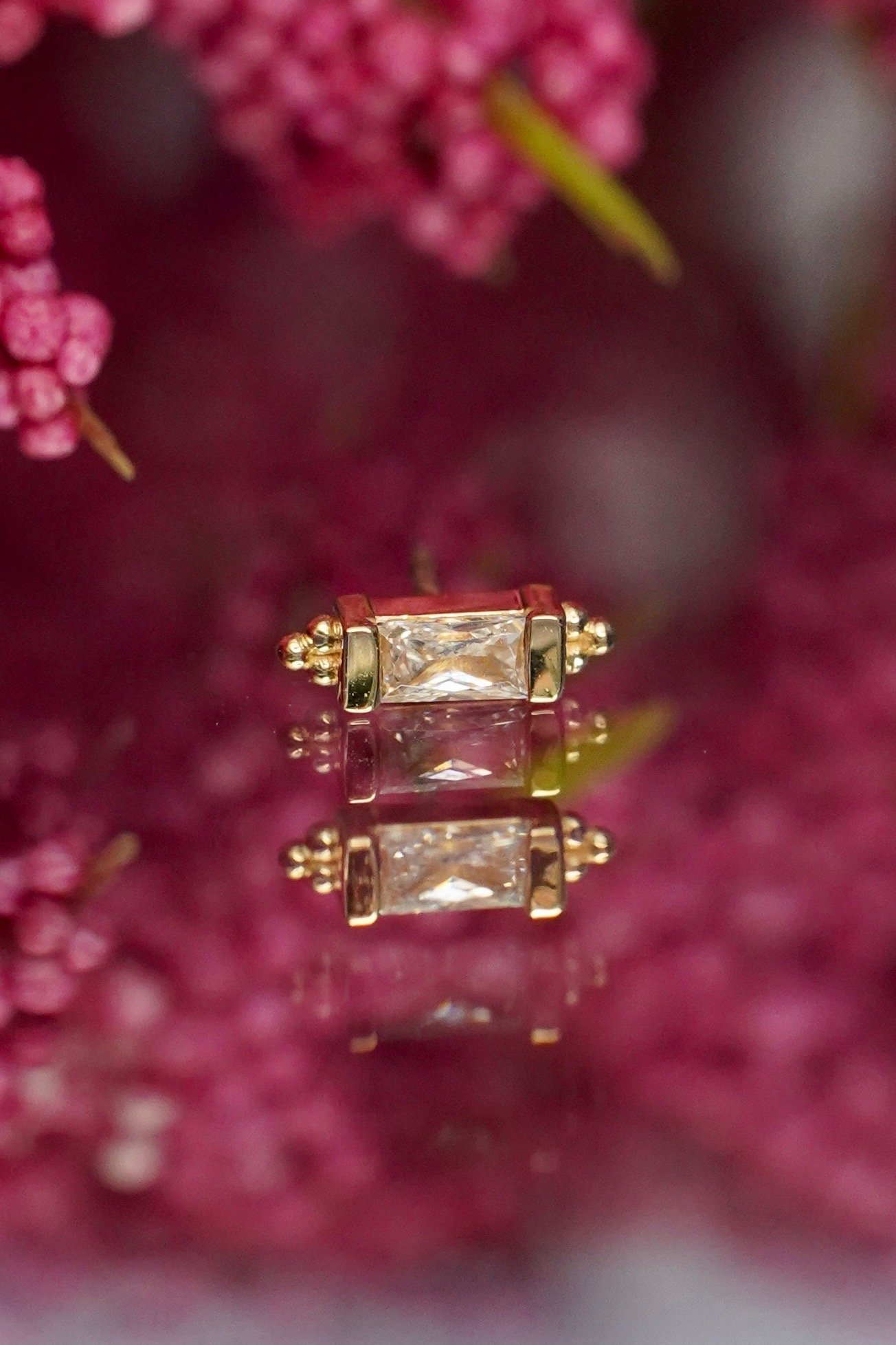 The “Siva” end handcrafted by Body Vision Los Angeles is such a versatile piece! Made with 14 karat solid gold, these pieces feature 3×1.5mm straight baguette cut genuine gemstones with a tri-bead accent on either side. They are compatible with a NeoMetal threadless post sold separately!