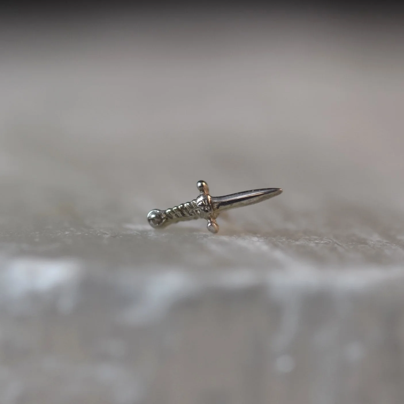 These 14 karat gold handcrafted slasher daggers from Body Vision Los Angeles are available in 9mm or 13mm. Compatible with 16/18 gauge Industrial Strength internally threaded posts.