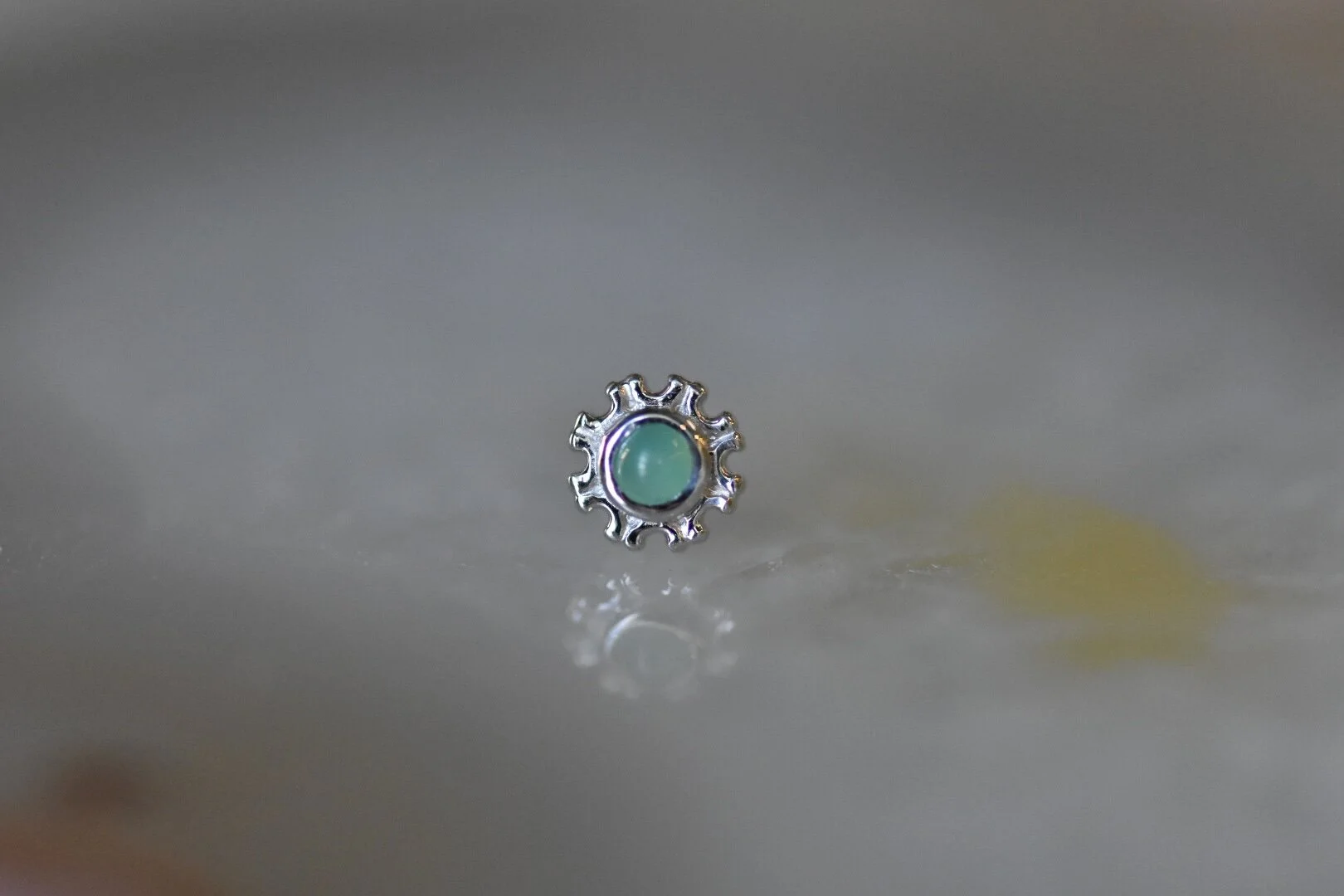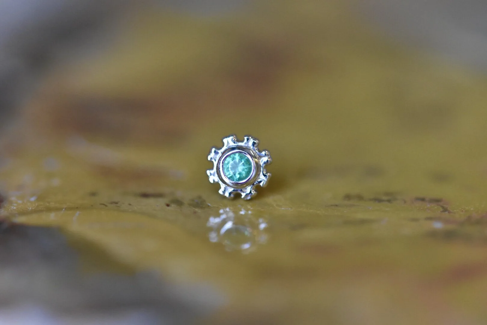 Each of these ends has a 3.5mm overall diameter with a 1.5mm stone in the center. Each of these ends are made with 14k solid white gold with a variety of stones and are compatible with Threadless posts.