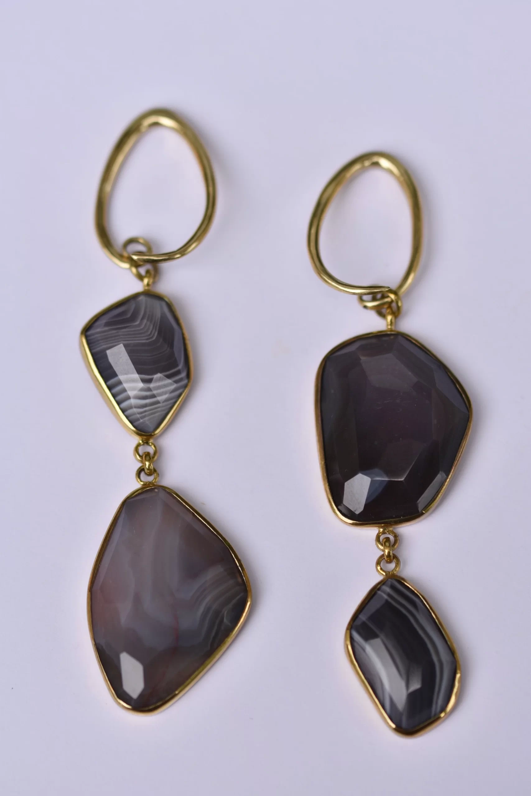 Made of solid brass with faceted Botswana Agate, this pair of weights will fit lobes size 8 gauge and larger.