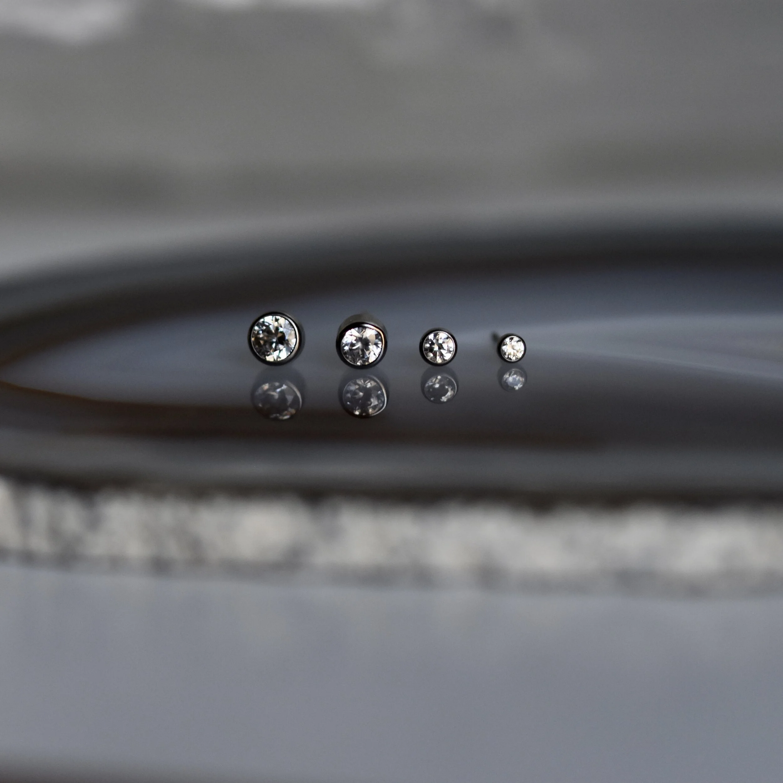 White cubic zirconia in a titanium bezel setting. Compatible with a threadless Neometal back.