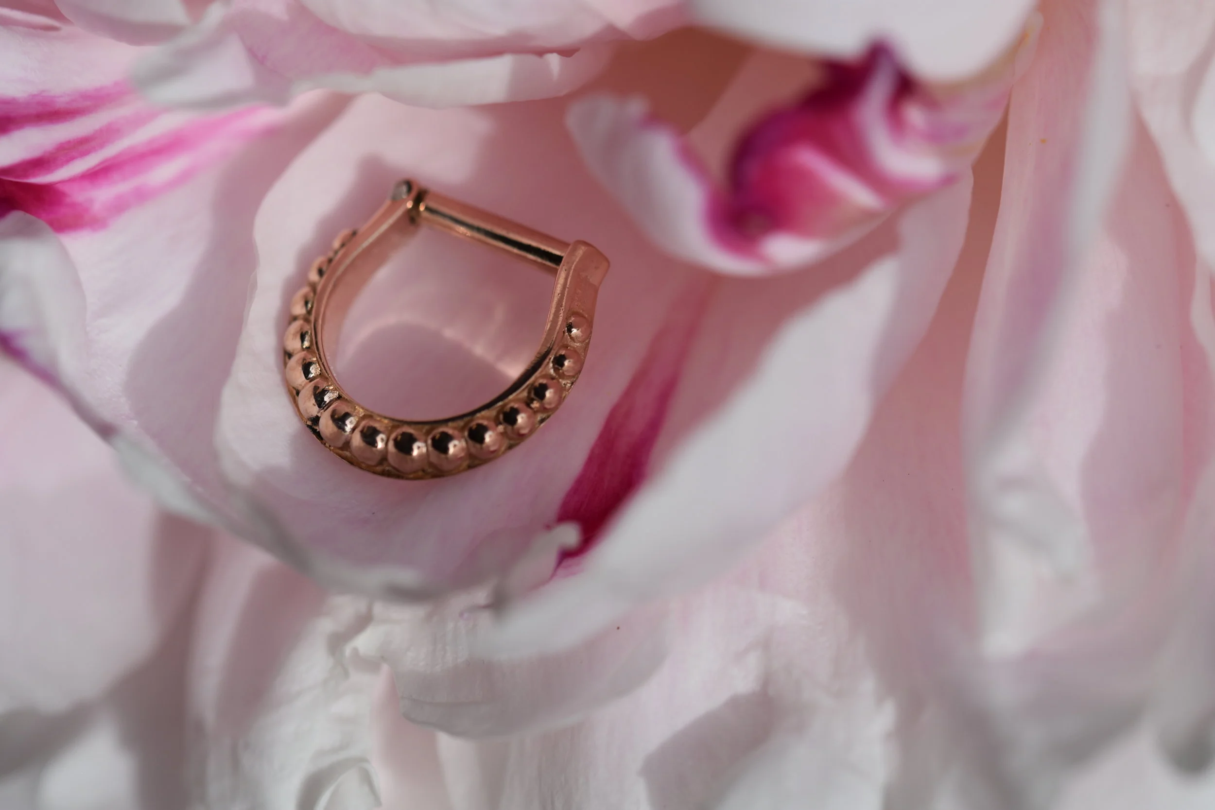 These beauties are 16g clickers with a 5/16” diameter. They are 14k solid gold.