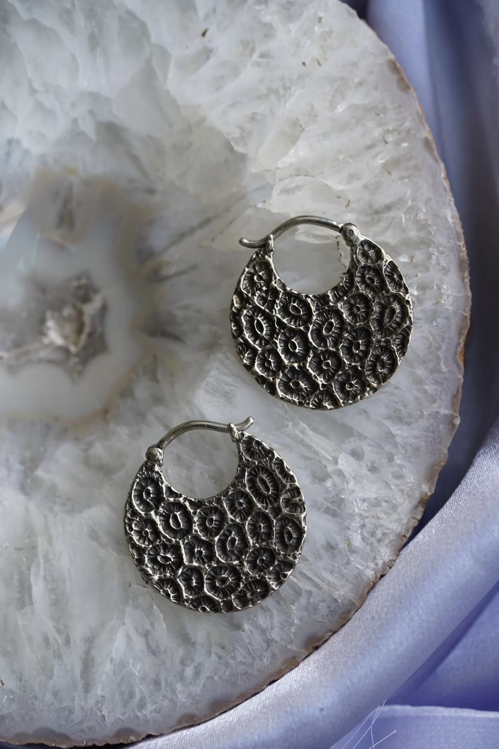 These cute & super textured earrings are handcrafted by Safe Products Body Jewelry. Made with white brass, these earrings are made to fit piercings 16 gauge or larger and measure approximately 1.25”x1