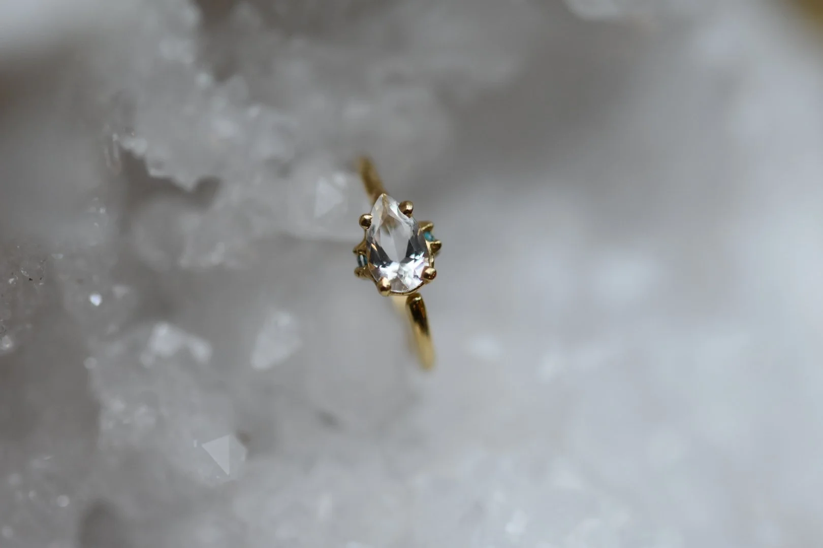 These cartilage/nose orientation seamless hoops are absolute show stoppers! Each 14k solid gold hoop features a pear set White Topaz with a 1.5mm genuine stone on each side. Currently available in 18g 3/8”.