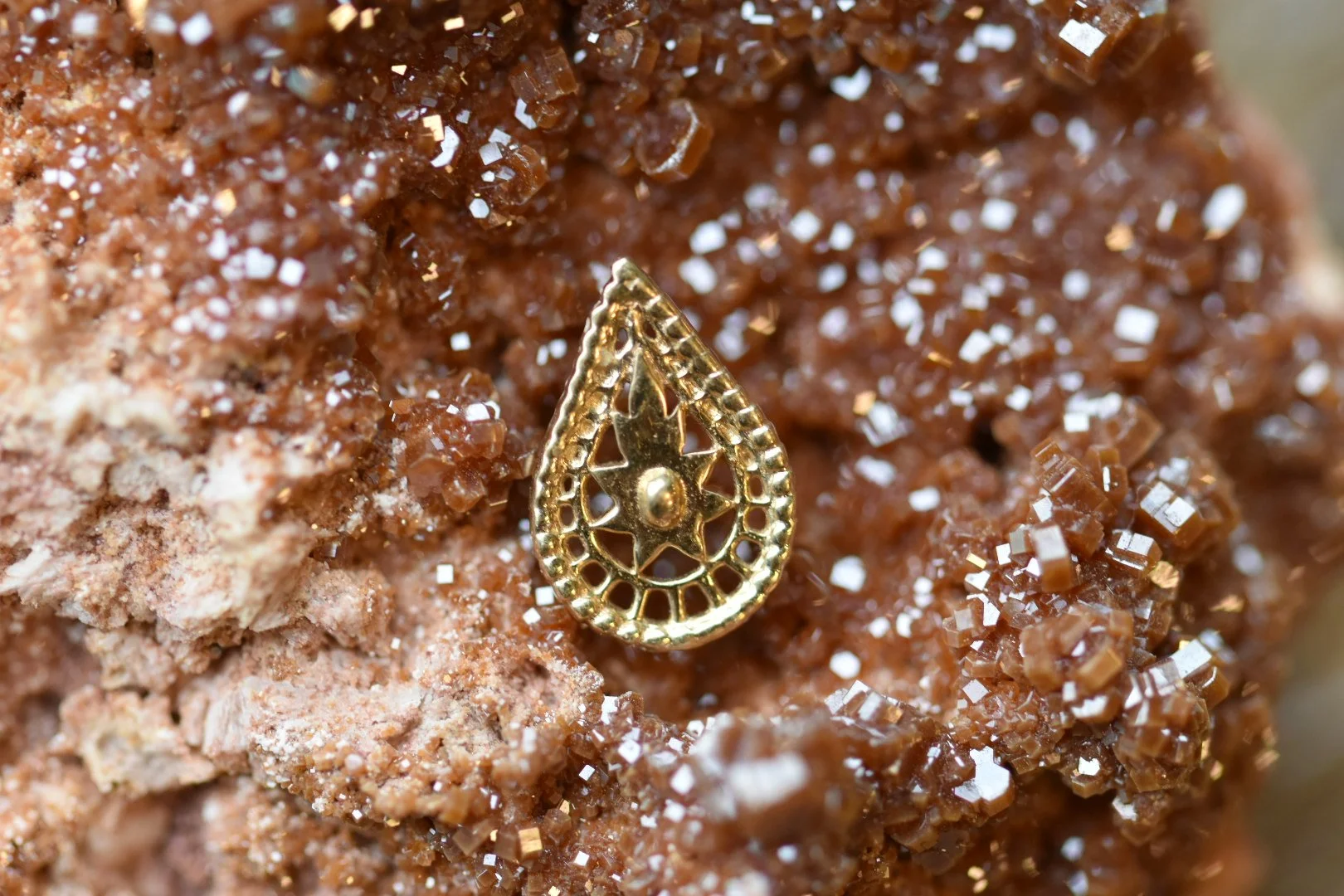 This 14k solid yellow gold end from Tawapa is compatible with NeoMetal threadless posts. The Altar end measures just over 6mm wide and 10mm long.